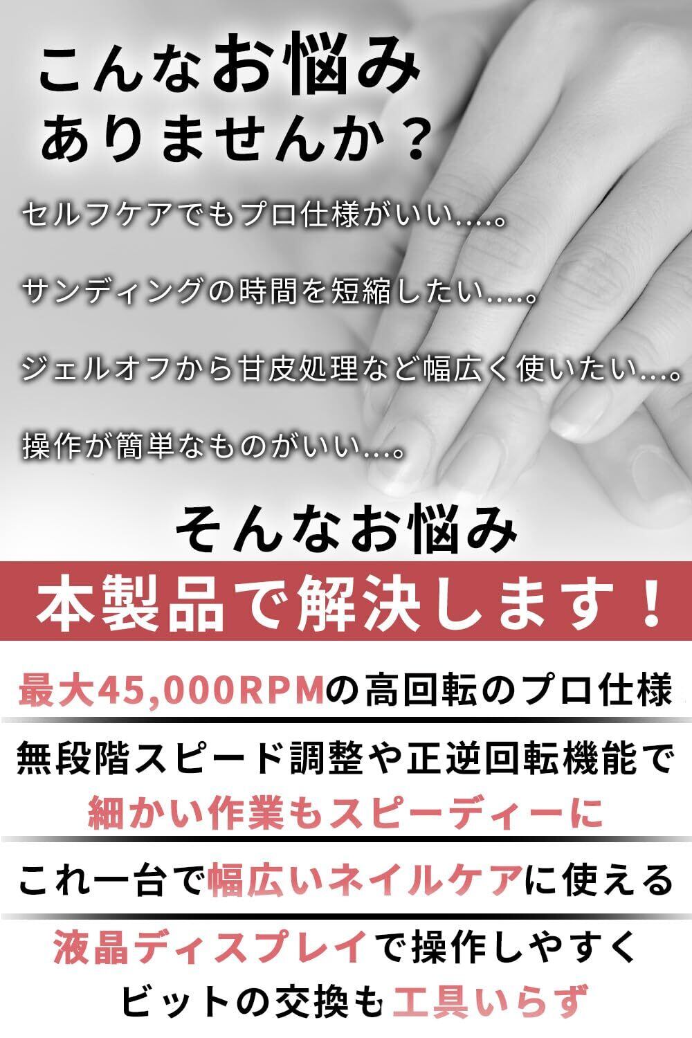 ネイルマシン プロ用 ネイルオフマシーン 回転数0-45000 ネイルマシーン (ホワイト)