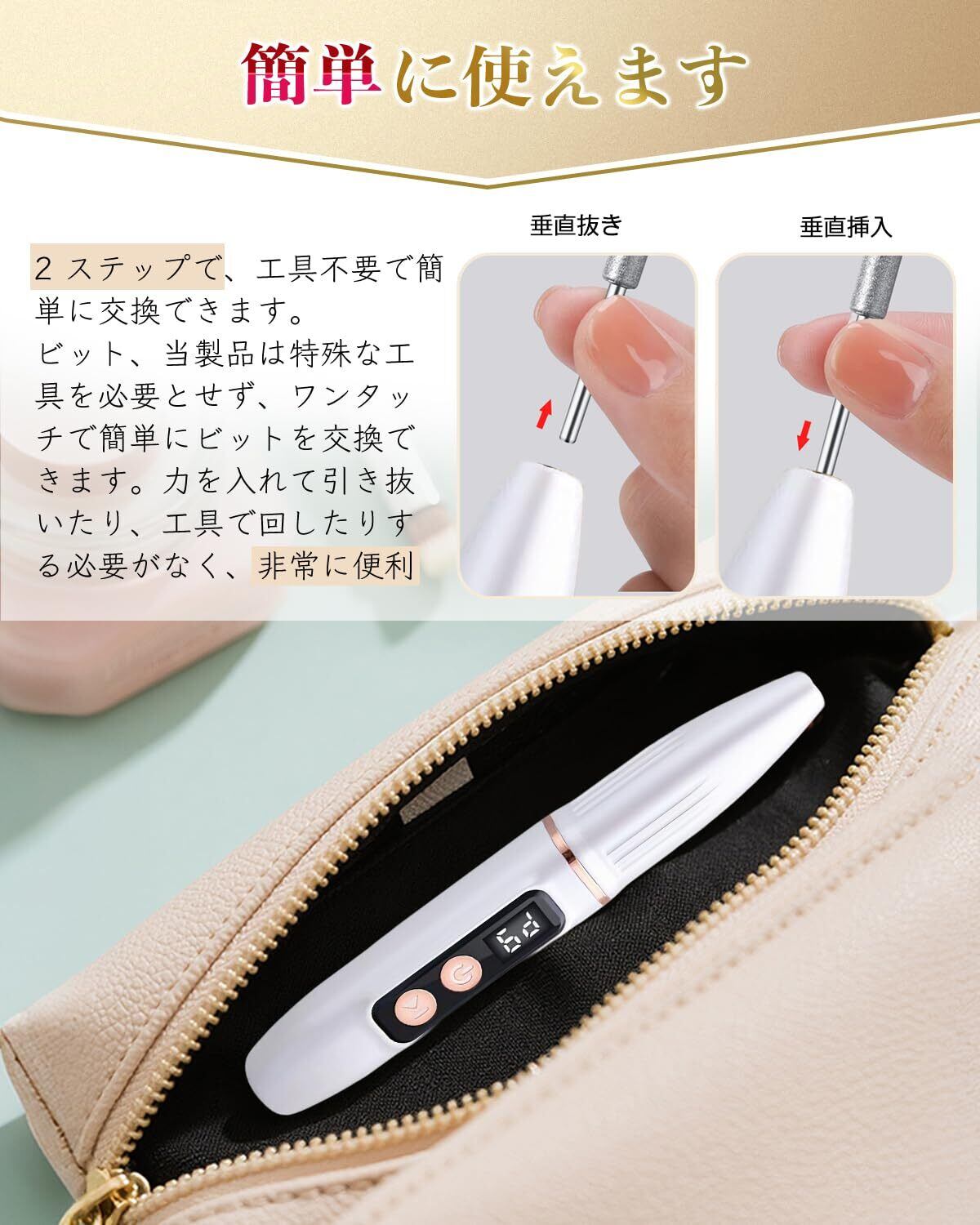 【USB クイックチャージ&超軽量ポータブルボディ】USB 充電設計を採用し、主流の充電機器に対応しています。2 時間で満充電すると 180 分間連続使用が可能で、同時に充電しながらの使用にも対応しており、家庭での日常ケアや商業サロンでの使用シーンのニーズを両方満たします。本体重量はわずか 90g で、コンパクトなポータブル設計を採用し、メイクバッグや旅行鞄に簡単に収納でき、外出や出張時にもいつでもネイルケアを行えます。