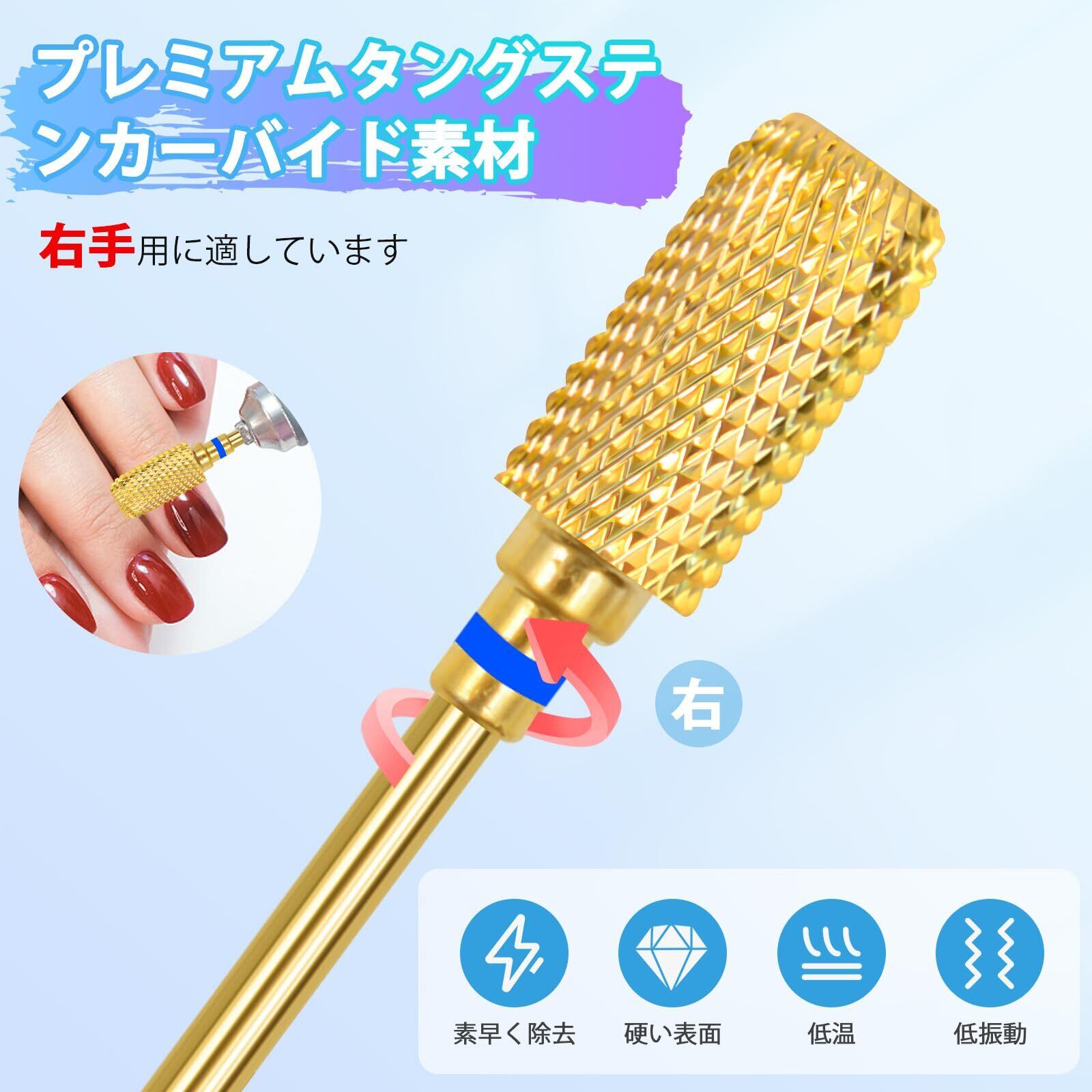 CGBE ネイルビット 5個 ネイルビット オフ 2.35mm 軸径 ネイルマシン ビット 研磨 爪磨き甘皮 ネイルドリルビット キューティクル除去 ジェルオフ 研削ネイル 自宅サロン用(ゴールド)