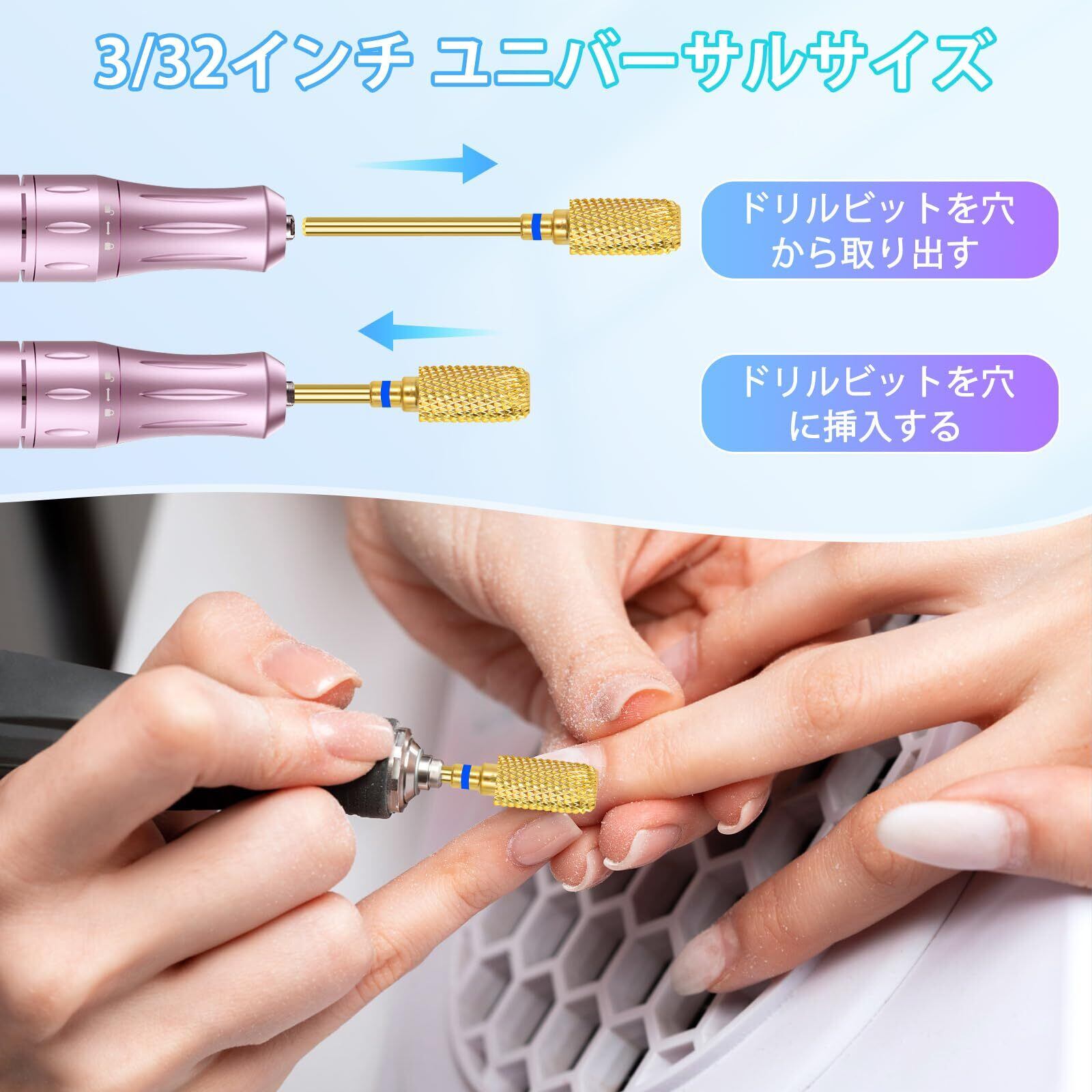 汎用3/32インチルータービット: 汎用の3/32インチ(2.35 mm)ジェルネイル ビットは、ほとんどの電動または充電式マニキュアネイルカッターに適合します。ネイルサロンやプロのネイルサプライ、家庭でのネイルアートに欠かせません
