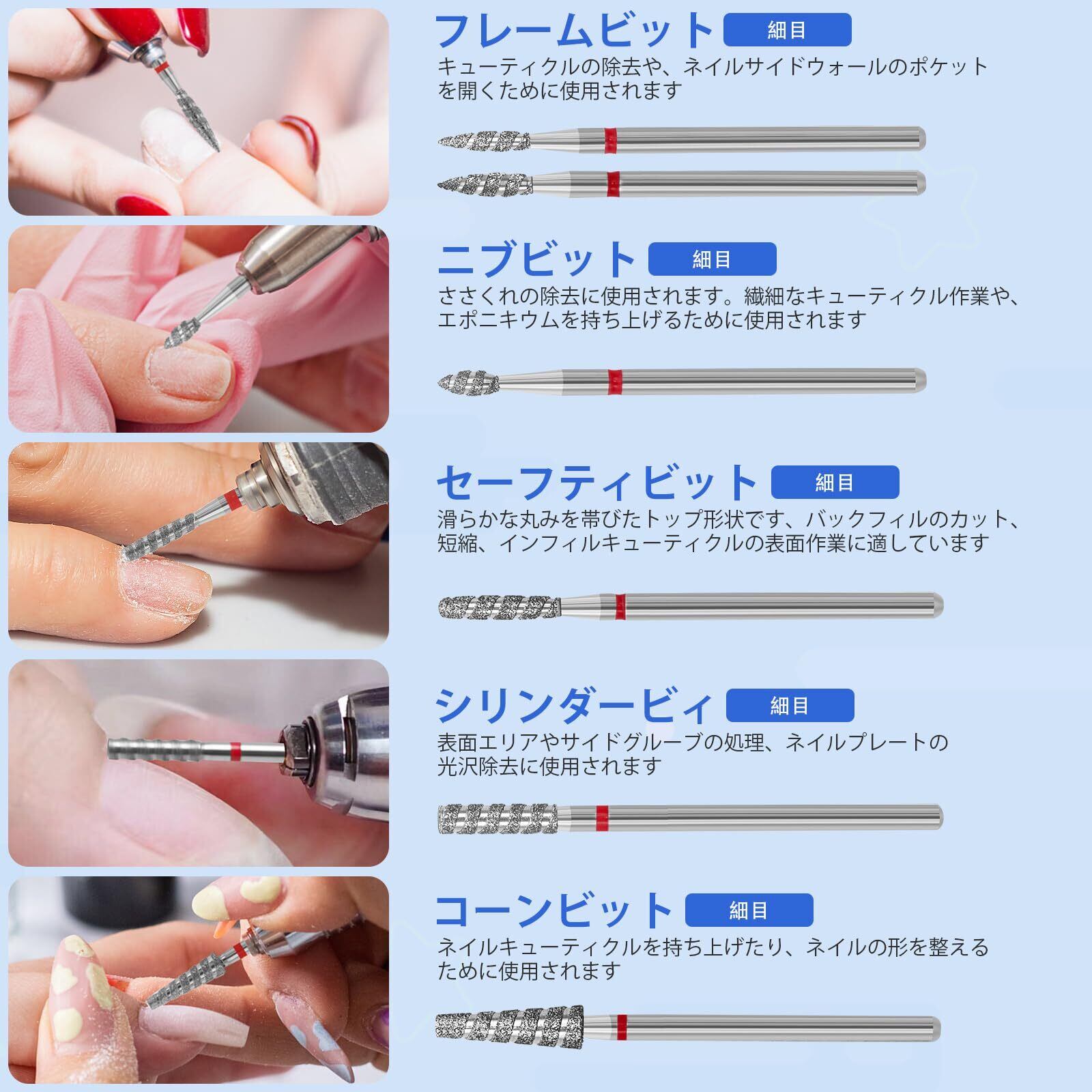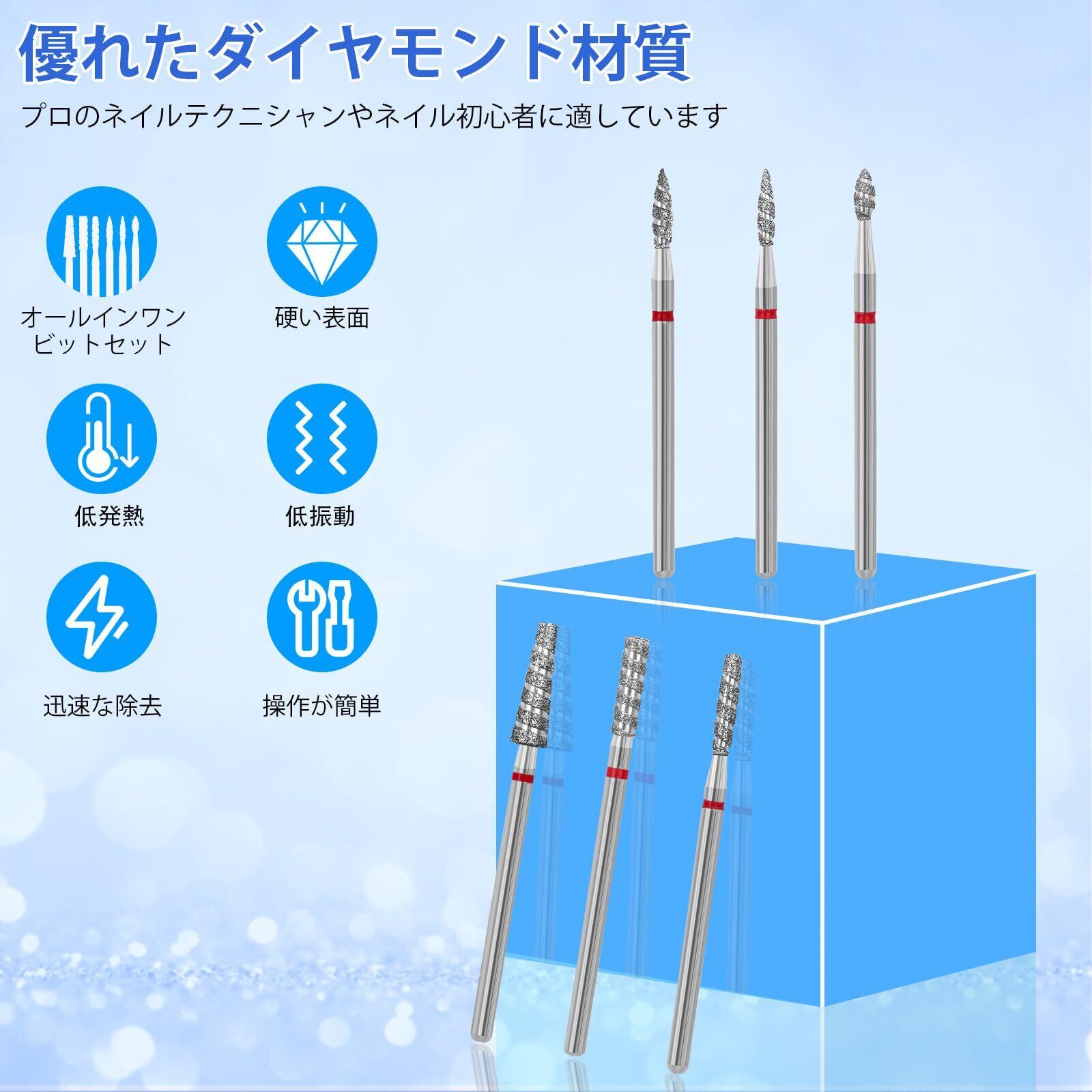 Diesisaネイルビット 6個 ネイルビット オフ 2.35 mm 軸径ダイヤモンド 電動ネイルマシン ビット 甘皮処理 角質除去 ネイルケア用 ジェルネイル(細目)