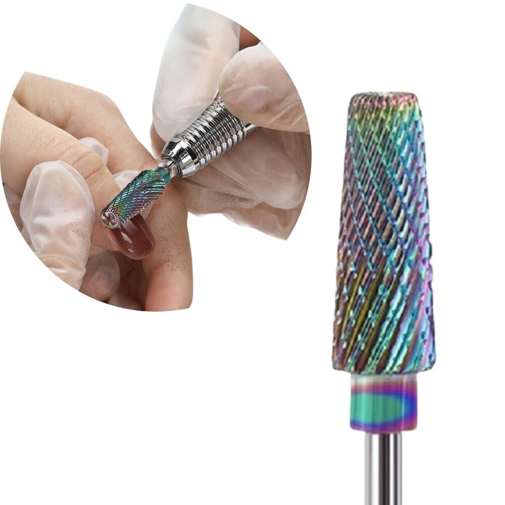 ネイルドリルビット 万能 ネイルビット リムーバー 5in1 タングステンカーバイト テーパー クロスカット QT-153 (オーロラ)