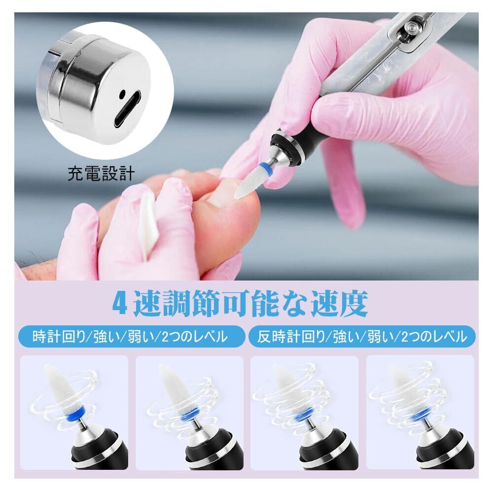マルチレベル調整可能: ネイルファイラーエレクトリックには時計回りと反時計回りの強弱の2つのギアがあり、ネイルケアのニーズに最適な速度と方向を選択できます。
