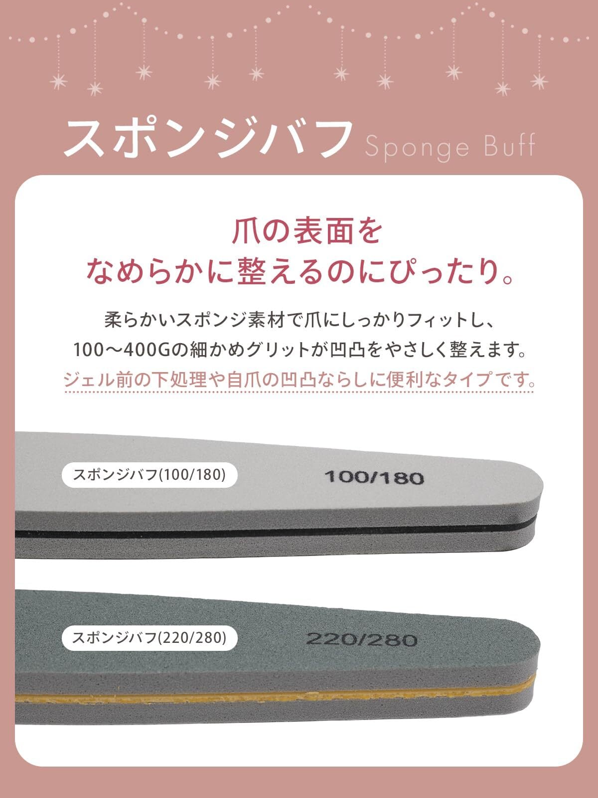 ネイルファイル 両面(20個セット)『ゼブラファイル(150,180,240)xシャイナー(1000/4000)xスポンジバフ(100/180,220/280)』 (スポンジバフ(220/280))