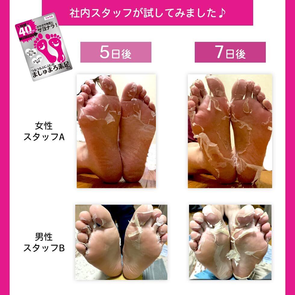 【POINT1】 40分間履くだけのスピードタイプで5~7日で角質が剥がれ始め、約2週間後にはつるつるスベスベの素足に!