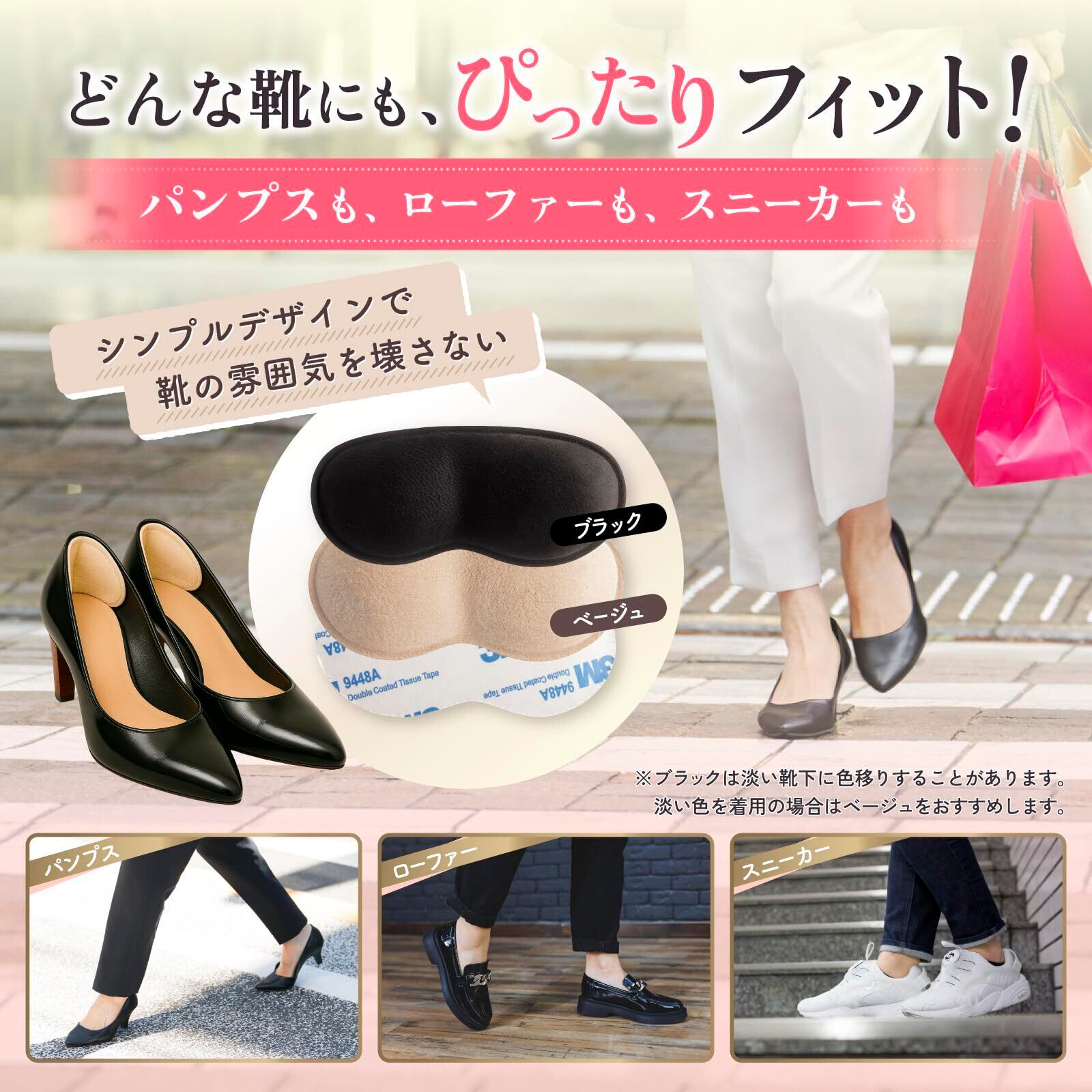天使のかかとパッド靴ずれ防止 サイズ調整 強力密着テープ 7mmクッション パンプス ヒール対応 女性用 (ブラック4枚/ベージュ4枚)