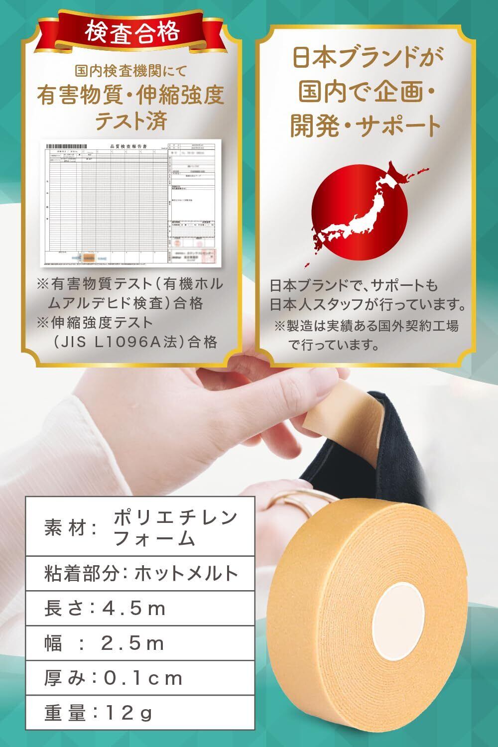 【国内検査機関にて検査済】 本製品は、有害物質および伸縮強度テストを行い、各基準値をクリアしています。