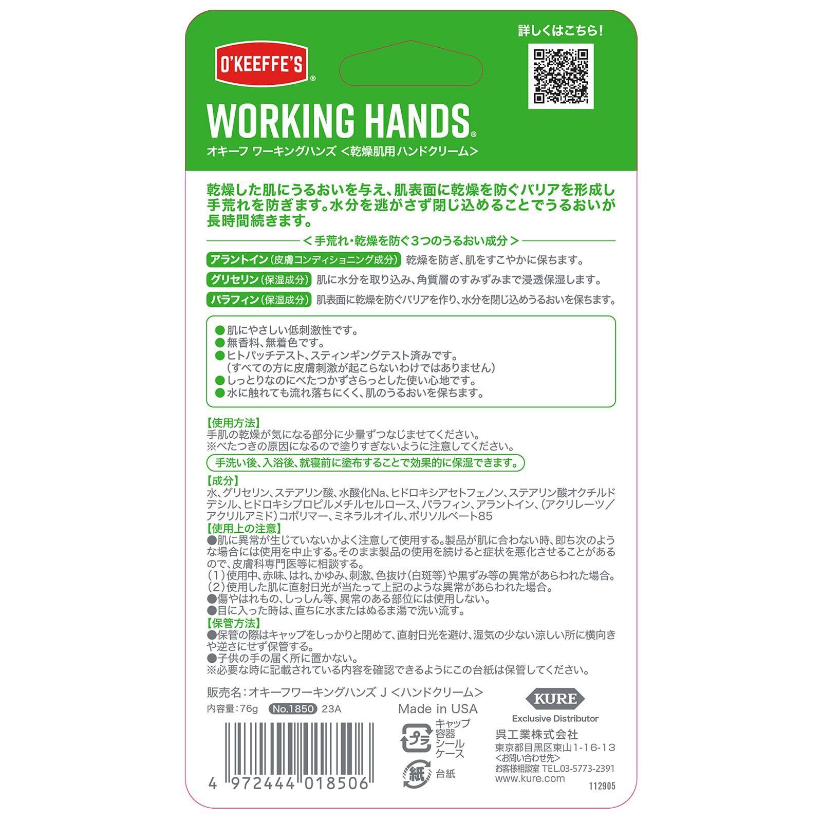 O'Keeffe's オキーフ ワーキングハンズ 76g 乾燥肌用ハンドクリーム 1850 保湿 無香料 低刺激
