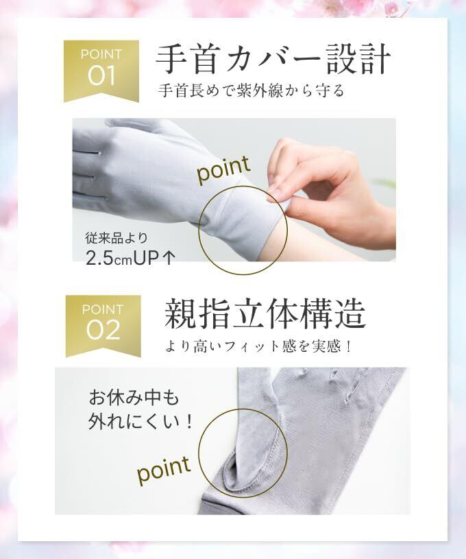 【 UVカット ・ 紫外線対策 】 薄手 の ニット生地 で 通気性 に 優れており サラッとした 付け心地 。シルク ( 絹 )の 紫外線遮蔽率 は 綿 の約2倍もあり お肌 を 紫外線 から守ります。シルク100% 素材で 手荒れ 対策 にも。 素材:素材構成: シルク100%(手首部分はシルク95%・ポリウレタン5%)