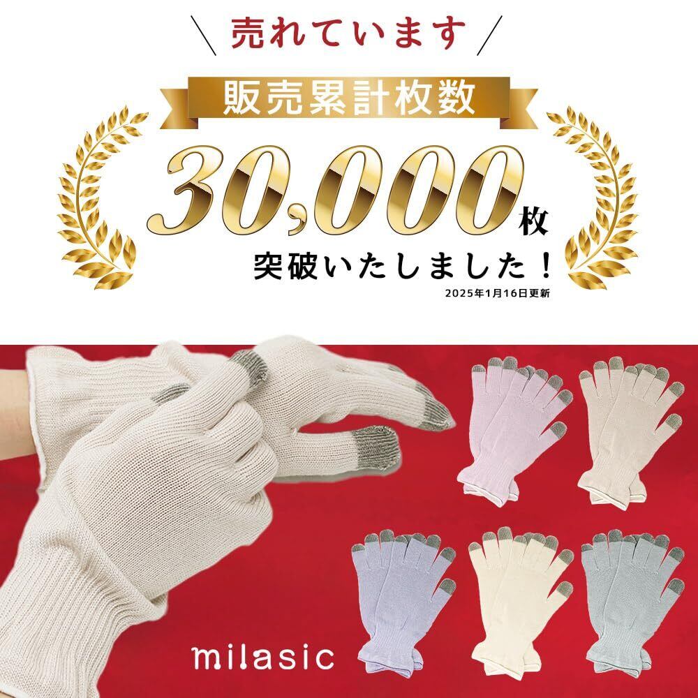 【寝るだけハンドケア!シルク配合のやさしい保湿手袋で手荒れ・乾燥・冷えから守る】milasicのシルクおやすみ手袋は、寝ている間に手の保湿・乾燥ケアができるナイトグローブ。肌にやさしい天然シルク配合で、ハンドクリームの浸透をサポートし、手荒れ・あかぎれ・ひび割れ・カサつきなどを防止。高い吸湿性・通気性で蒸れにくく、オールシーズン快適に使用可能。夜用のナイトケアグローブとして、また日中のハンドケアにも活用できます。女性用・男性用問わず使えるユニセックスデザインで、ライトグレー、ラベンダー、アイボリー、アジサイなど、くすみ系カラーがおしゃれ。冷え性の方や手先のにもおすすめ。ナイト手袋/保湿グローブ/乾燥対策/冷え取りグローブ/スマホ対応手袋/敏感肌/肌荒れケア/静電気対策