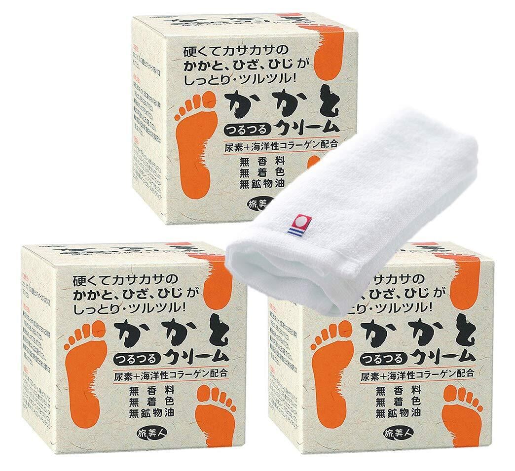 アズマ商事のかかとつるつるクリーム100g×3個セットと、今治タオル ウォッシュタオル1枚(素材:綿100%)
