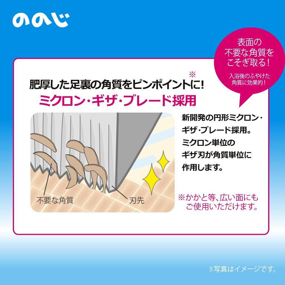 ミクロン・ギザ・ブレードで安全な設計ながら、かかとの角質、スポーツタコやヒールタコをゴッソリとるかかとやすりです。