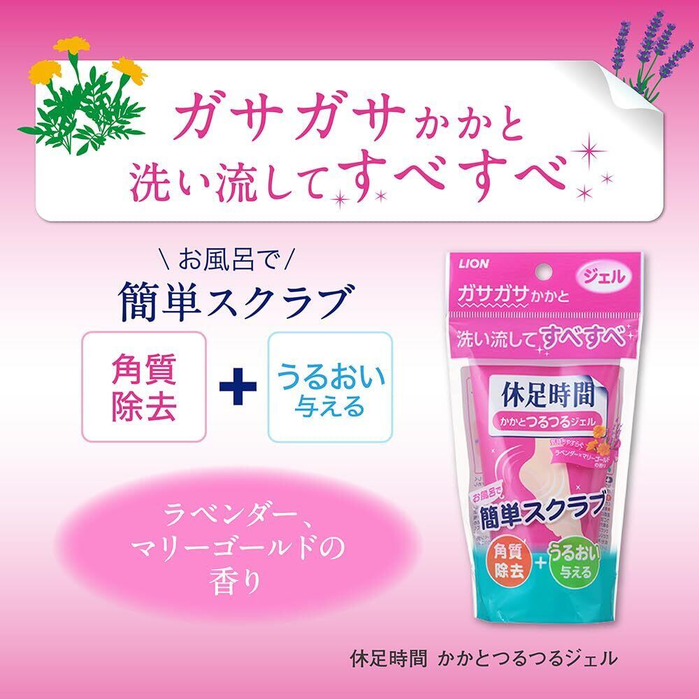 お風呂でマッサージして洗い流すだけで、ジェルの3つの働きにより、「ガサガサ」かかとを「つるつる&ふっくら」かかとにします。心地よいマッサージ感のあるジェルです。ラベンダー・マリーゴールドの香り。