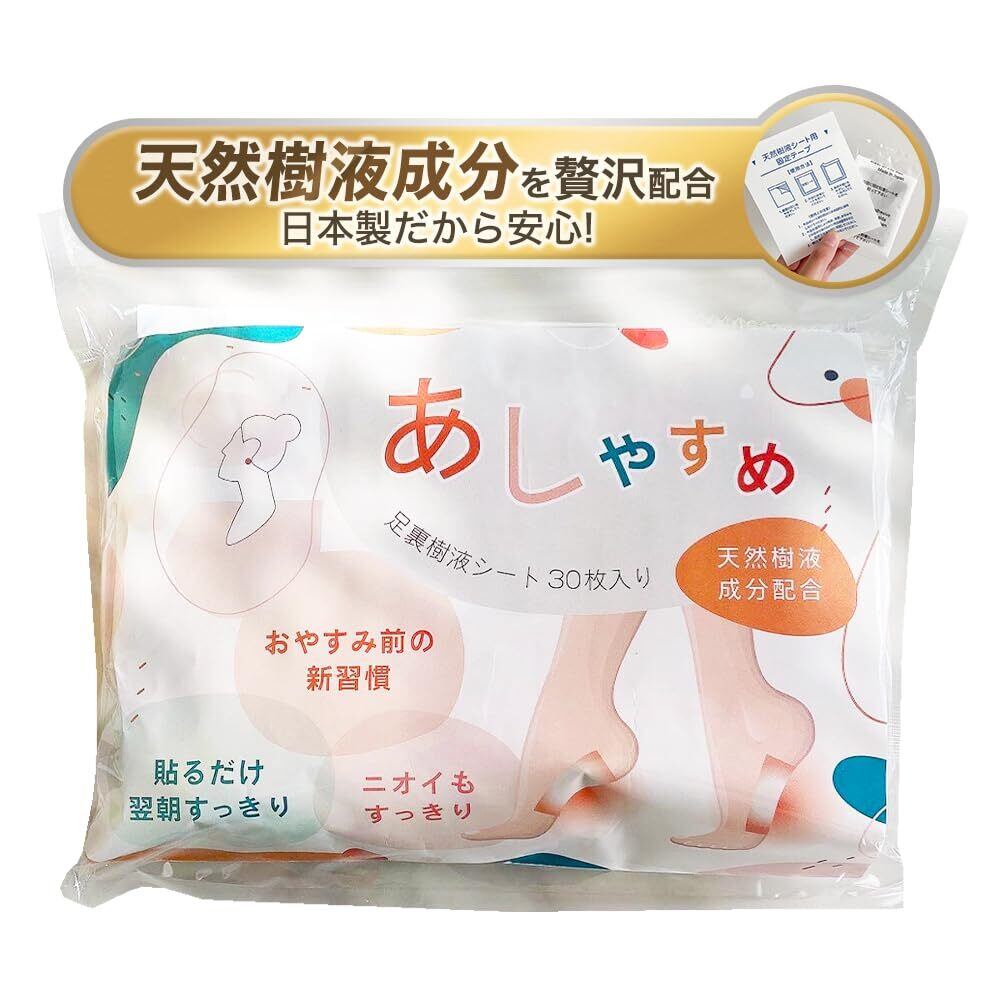 あしやすめ 足裏樹液シート 30枚(15回分) フットケア 足裏シート 足用シート 遠赤外線 日本製 無臭 天然成分配合 木酢末、竹酢末、竹炭末、ドクダミ末、ビワ葉末、遠赤パウダー ふくらはぎにも使える