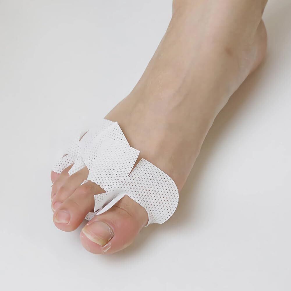 【サイズ】16.5cm × 7cm 【材質】パルプ50%・レーヨン50% 【容量】100枚入り 【装着方法】5本の足指の先端にそれぞれ切り込みをあてがってから、均等に指の間に差し込み、靴下を履いてください。左右両用です。 100枚入りは簡易包装となります。