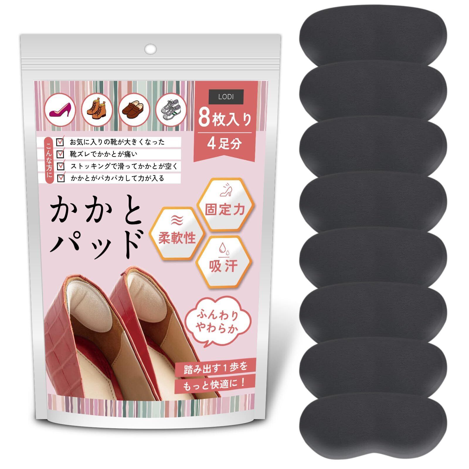 靴ずれ防止 かかとパッド 靴かかと保護パッド パカパカ防止 サイズ調節 粘着シール付き 4足セット(8枚入) (ブラック)
