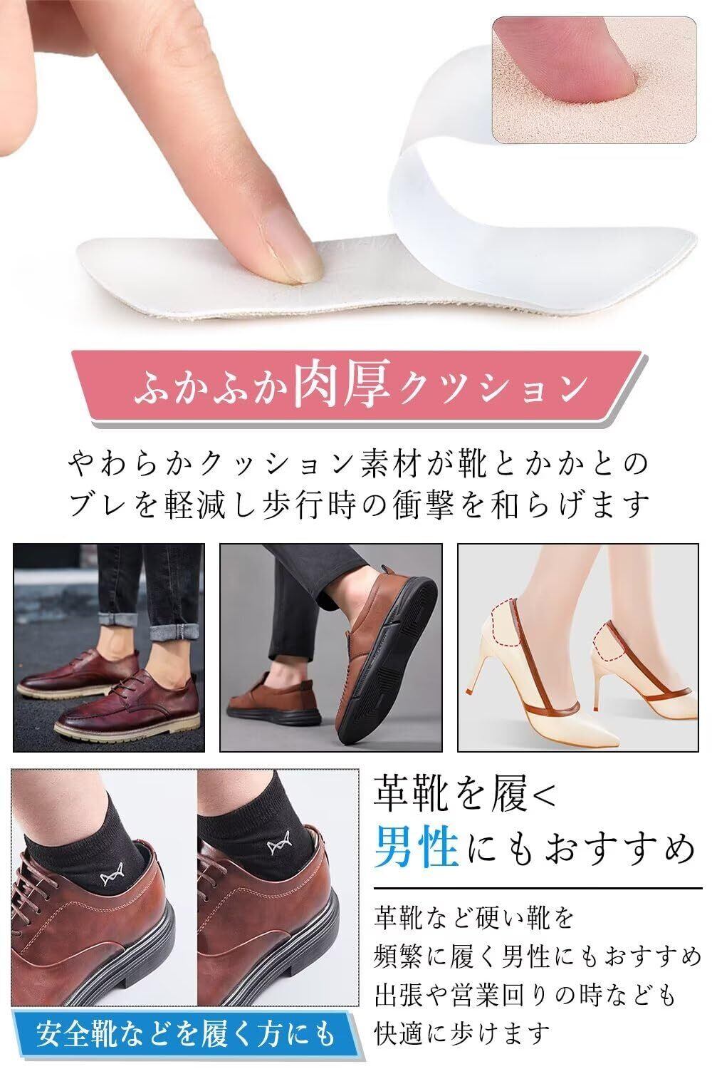 【かかと保護】やわらかクッション素材が靴とかかとのブレを軽減し、歩行時の衝撃を和らげます。長時間使用しても変形しにくく、滑り止め効果も抜群で、パカパカのサイズ大きめの靴にも適用し、脱げないようにかかとの位置をしっかりと固定します。購入したばかりのパンプス、履き慣れない革靴、サイズが合わない靴などに使え、痛みを我慢せず快適に歩けます