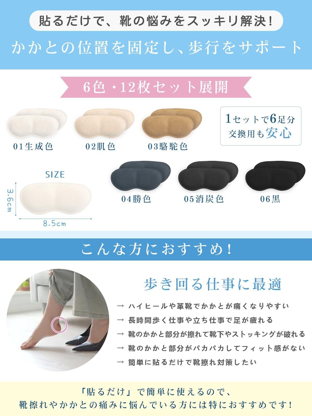 かかとパッド 靴擦れ防止テープ 靴擦れ防止パッド 靴ズレ防止テープ 靴 サイズ調整 かかと保護 クッション パンプス かかと 脱げ 予防 防止 クッション 靴ぬげ防止パッド 靴ぬげ対策 粘着シール付き 男女兼用 Heel Pads (02肌色, 12枚入り)