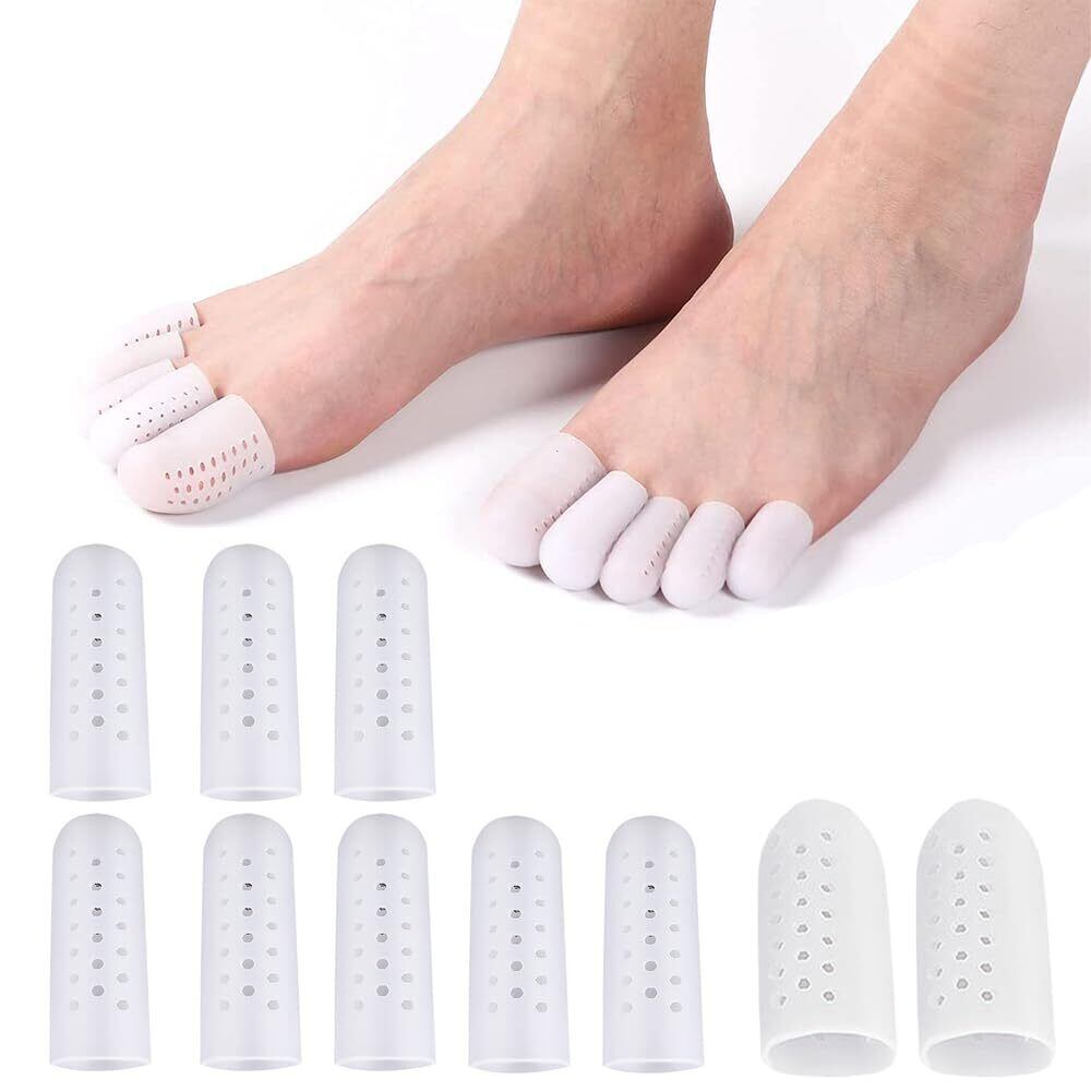 シリコン 足指サック指サック 足指 キャップ プロテクター 足指 袖 足爪保護キャップ 摩擦疼痛緩和 通気性 水洗い可 (大2個、小8個)