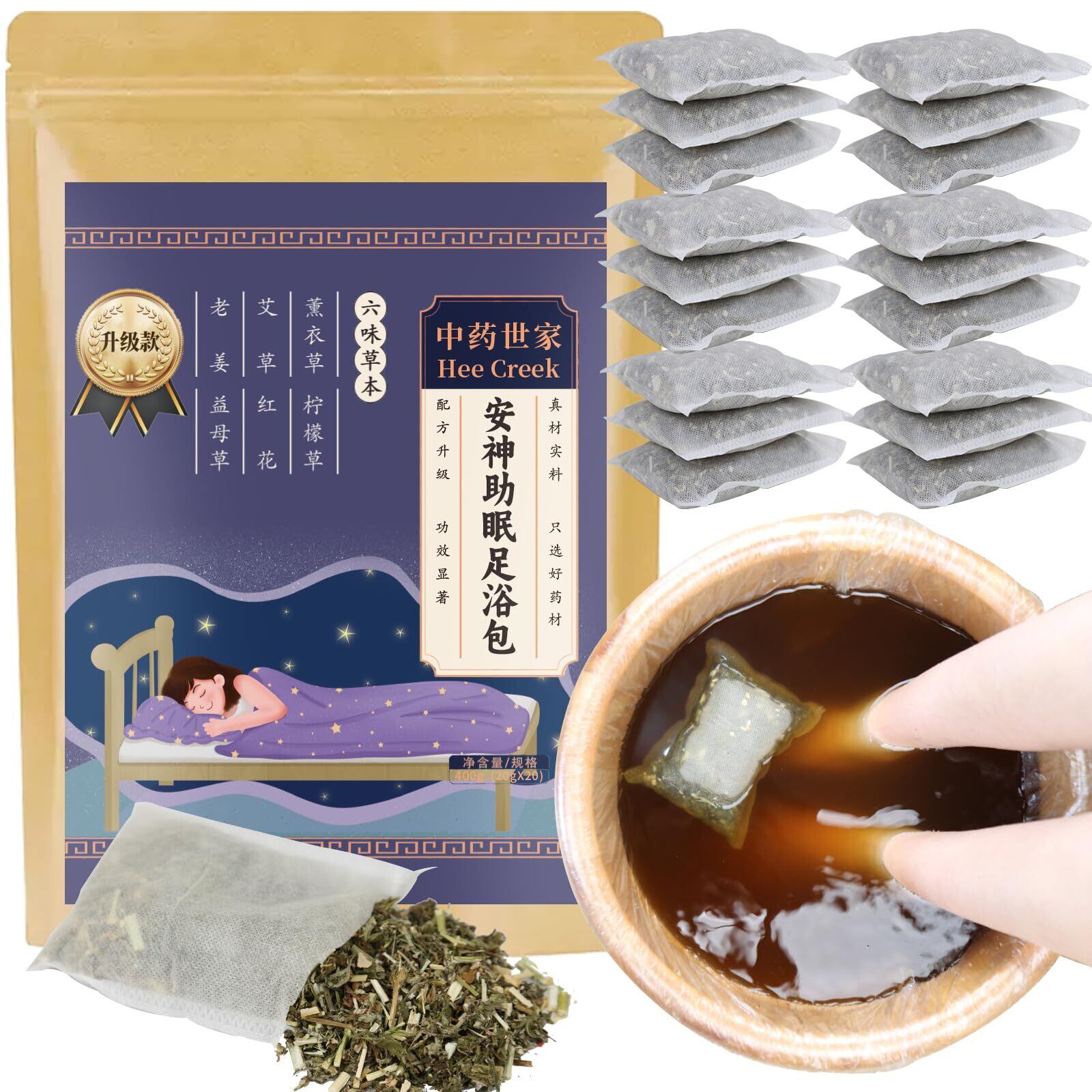 安神睡眠 足浴包 400g(20包*20g)ラベンダー おやすみ足湯バッグ 泡脚包 酸枣仁 足湯 中国フットバスバッグ 足浴包家庭用バスタブ