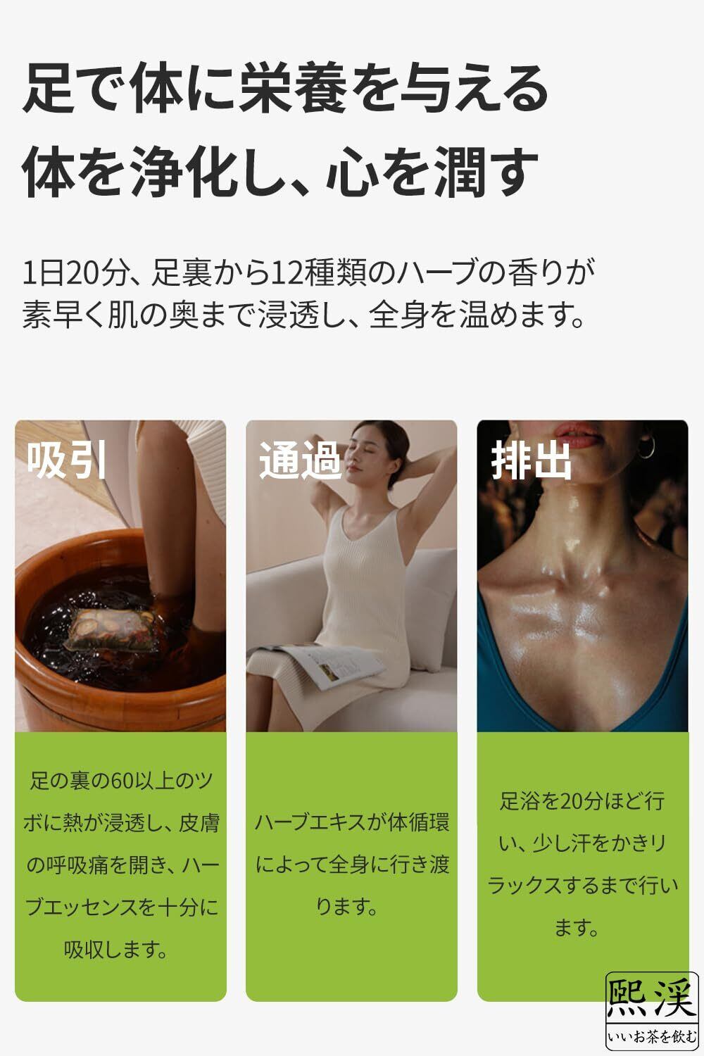 使い方:①お湯に浸す。お湯にバックを10~15分浸してから適量の冷水を加えて適温に調節すると使えます。足湯の時間は15~30でよい。②煮る。バックを適量の水に入れて水が沸騰したら10分ほど煮て適量の冷水を加え、水温を適温に調節すると使えます。お好みで使い方をお選びいただけます。