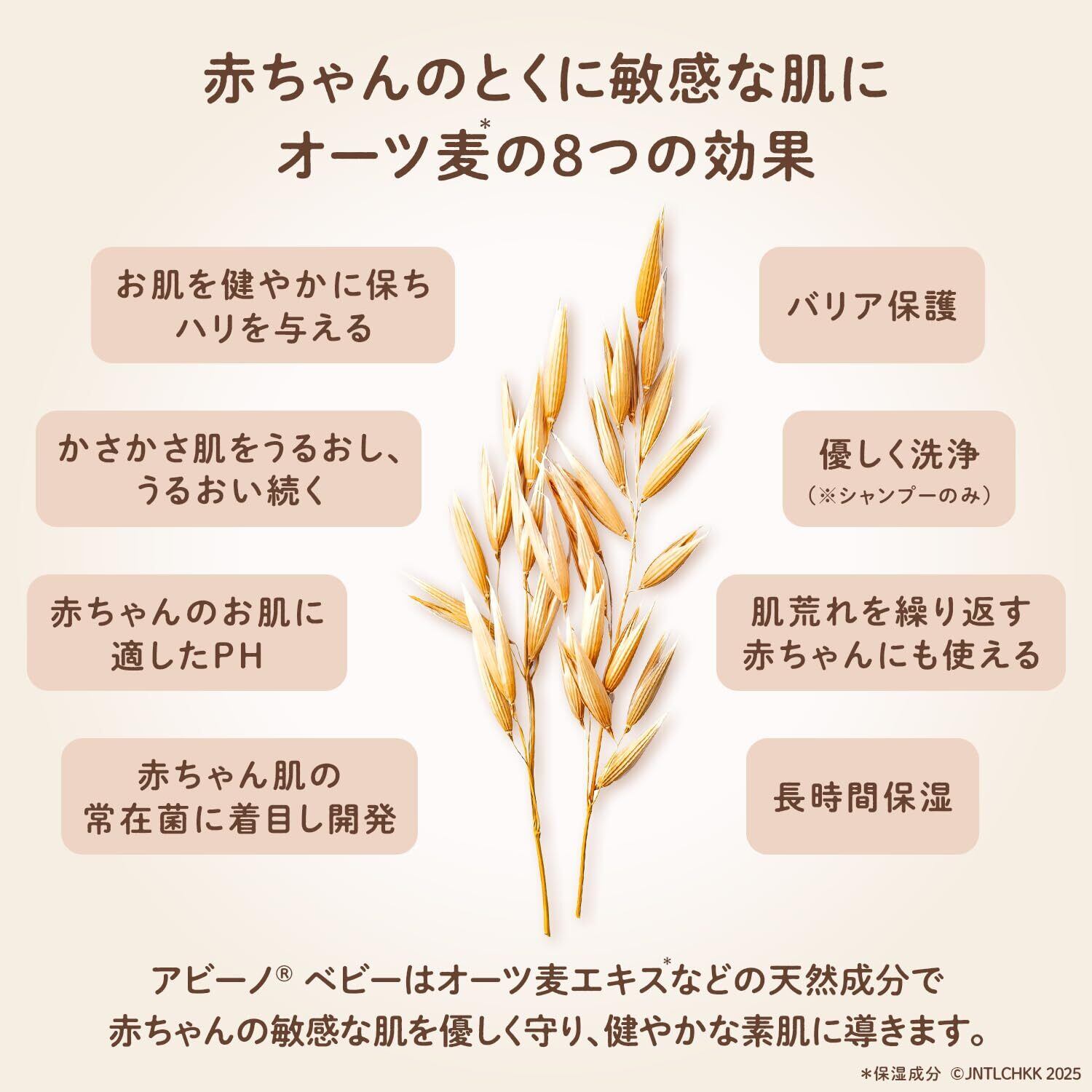 皮膚科学の視点から厳選された天然オーツ麦*1を独自配合。1日中保湿力が続く処方により、乾燥による肌荒れを防ぎ、うるおいをしっかり閉じ込めます。すーとべたつかない塗り心地。生まれたその日から使えて、”特に敏感な”赤ちゃんの肌をしっかり守ります。 *1 カラスムギ穀粒(保湿)