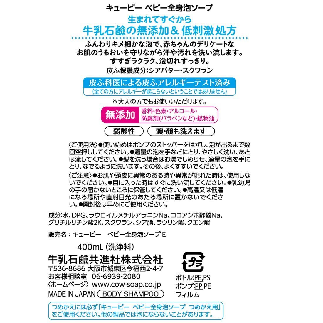 キユーピー キューピー 全身ベビーソープ 泡タイプ ポンプ400ml 無香料