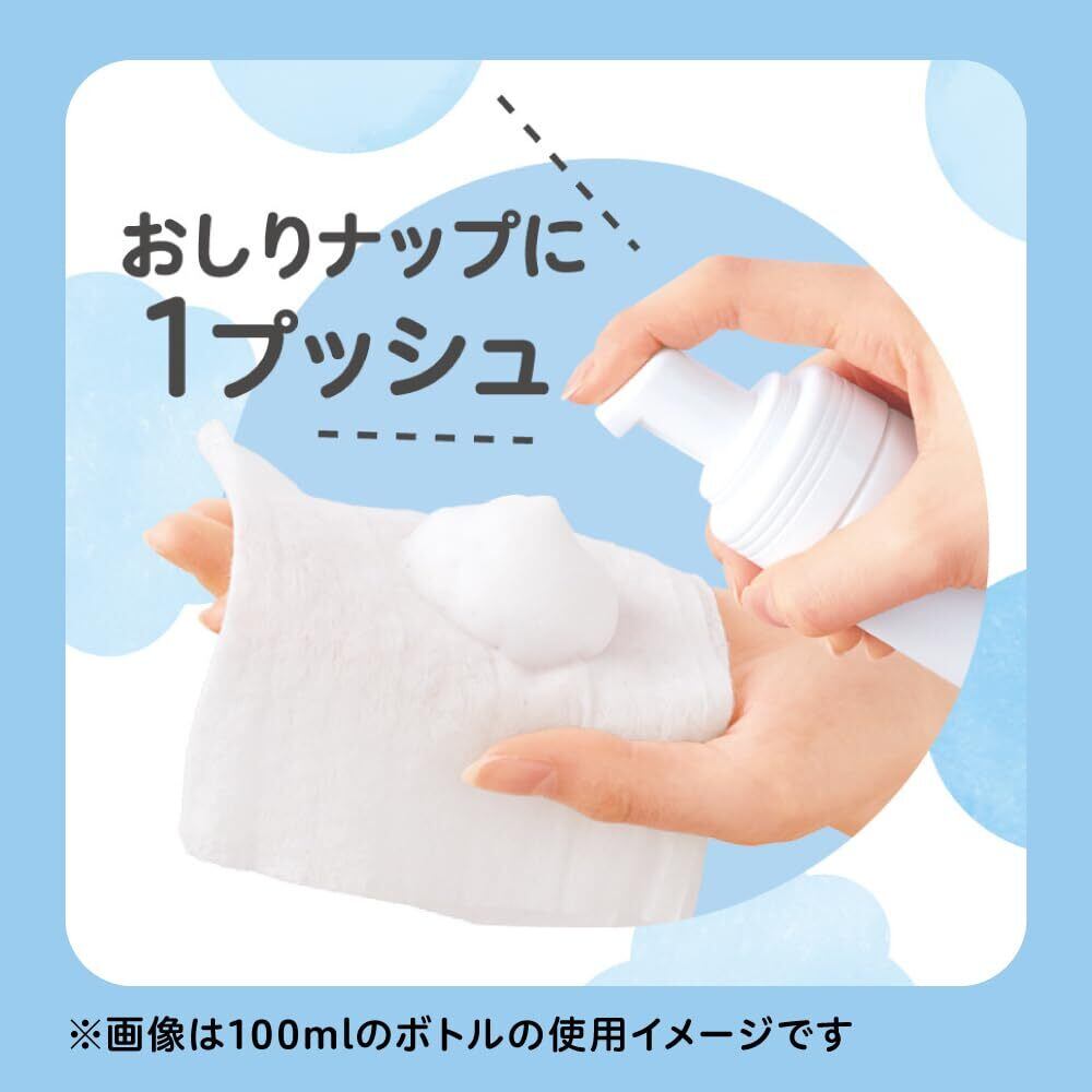 おしりふき※ に500円玉大の泡をとります。おしりをやさしく拭いてください。 お肌に泡が多少残っても問題ありません。※おしりふきには「ピジョンおしりナップシリーズ」をご使用ください。