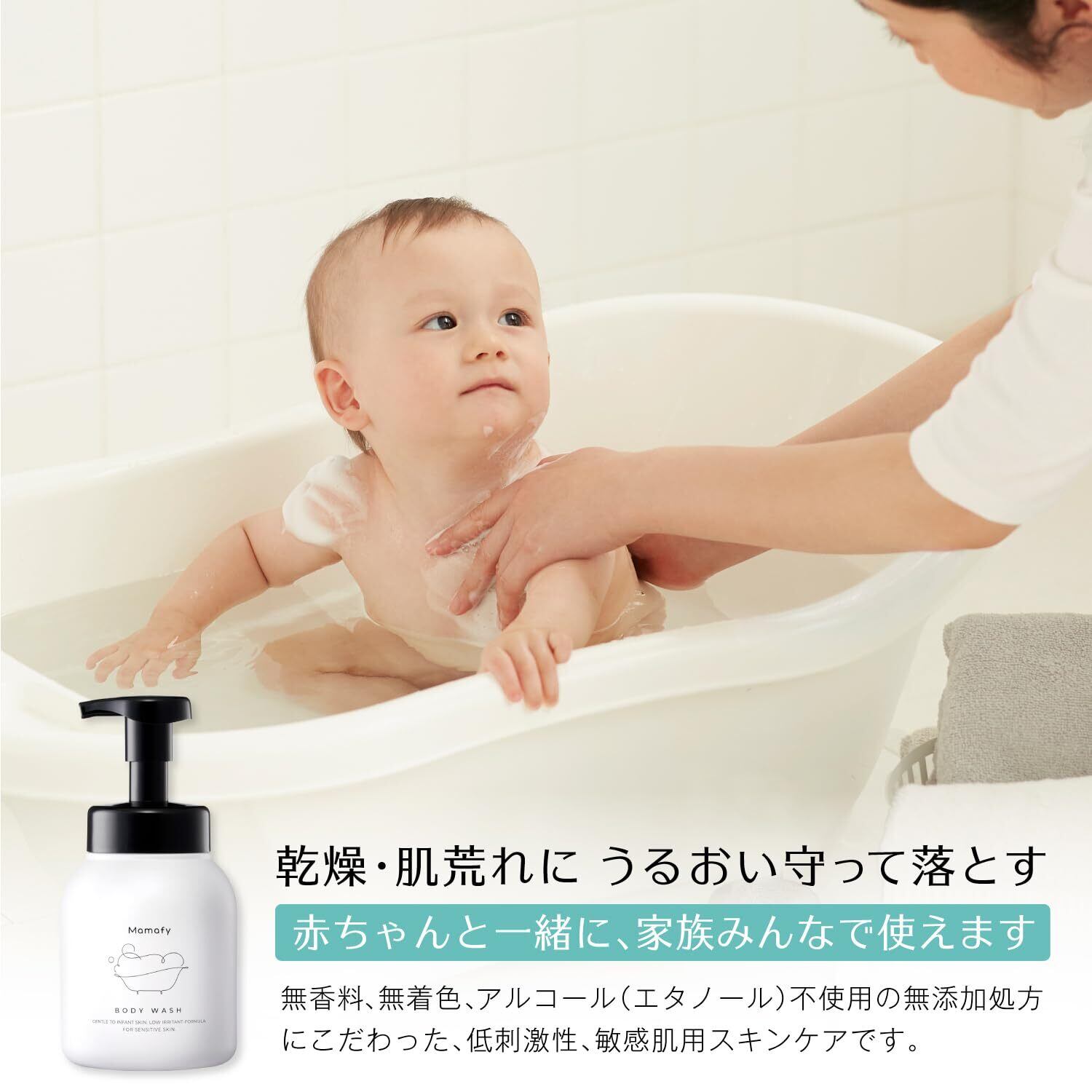 【家族みんなで使える】アレルギーテストやパットテストをクリアした低刺激性製品なので、赤ちゃんはもちろん、家族みんなで使えます。弱酸性、無添加処方で敏感肌の方にもおすすめです。