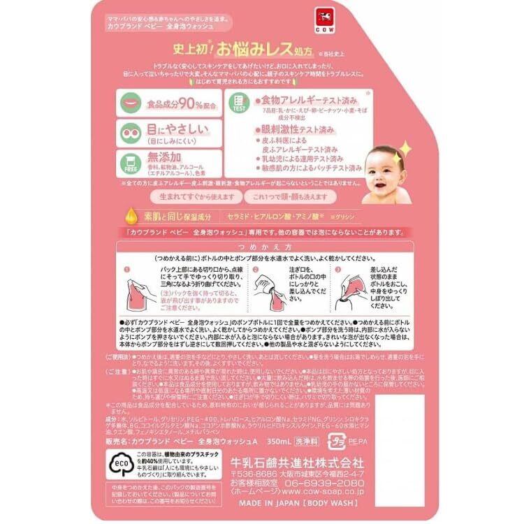 カウブランド ベビー 全身泡ウォッシュ 詰め替え 350mL + おまけ付き(オリジナルミニせっけん)
