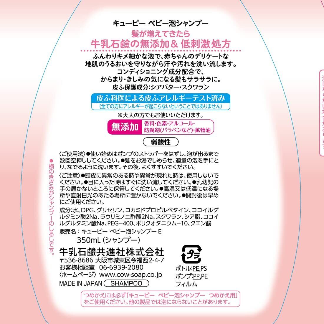 ・つめかえ用にはキューピーベビーシャンプー泡タイプつめかえ用をご使用ください。他の製品では泡にならない場合があります。