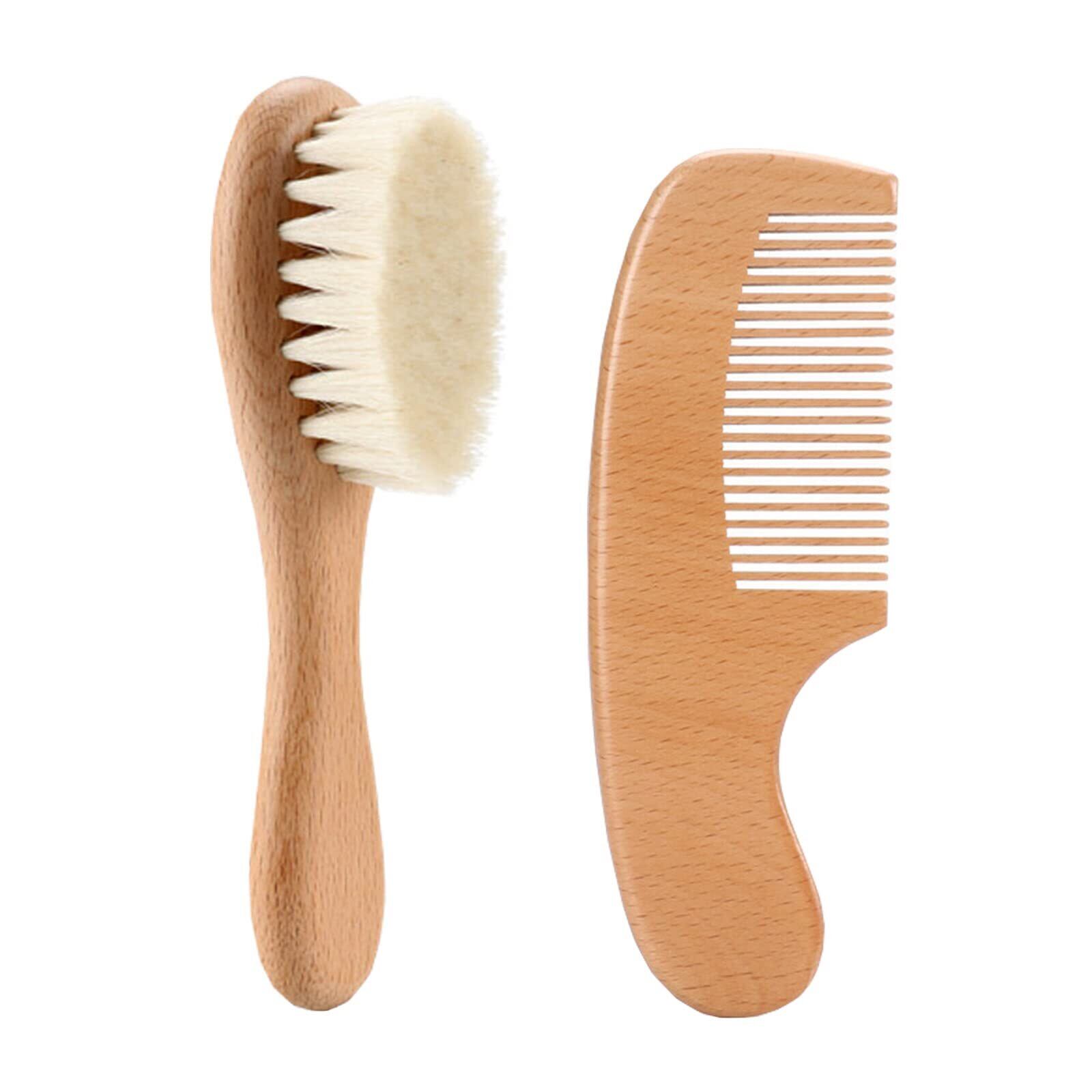 ベビーヘアブラシ 新生児用コームセット 頭皮のマッサージ 木製ハンドル 天然木 山羊毛 静電気防止 出産祝ギフト 新生児 乳児 赤ちゃん 赤ちゃん用 (2点セット)