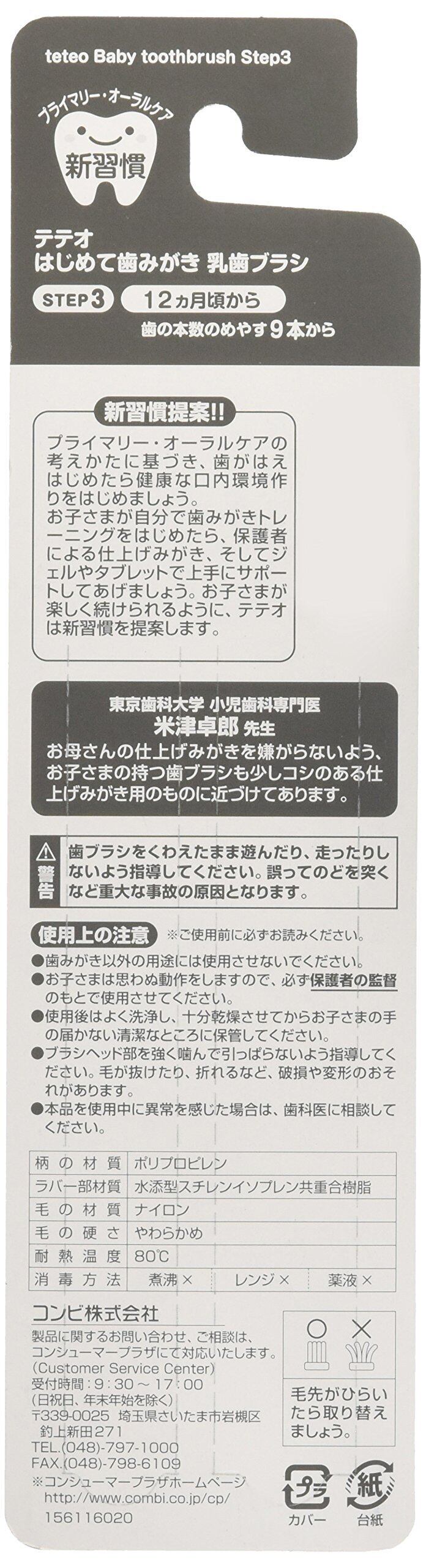 コンビ Combi テテオ teteo はじめて歯みがき 乳歯ブラシ STEP3 (歯の本数の目安:9本以上) 自分で奥歯まで磨く練習に