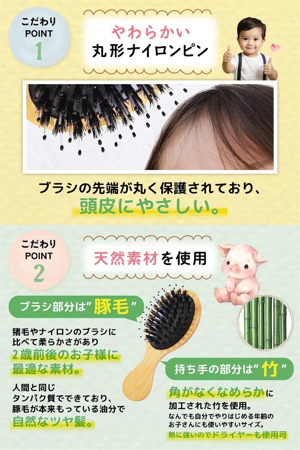 ベビーブラシ 幼児 ヘアブラシ 『やさしく撫でるだけで絡まりほどける』 クリーナー付き 天然豚毛 くし 子供 保育園