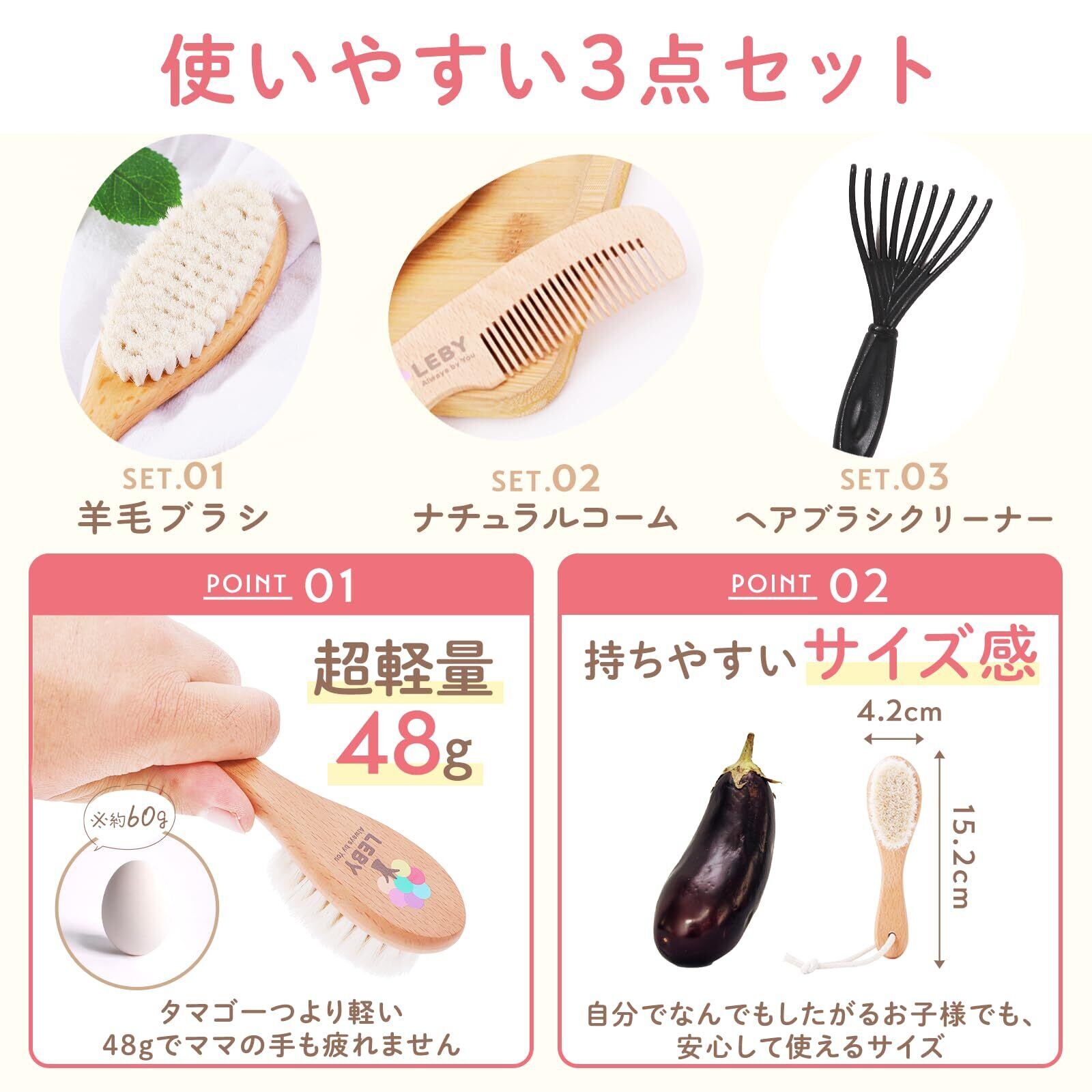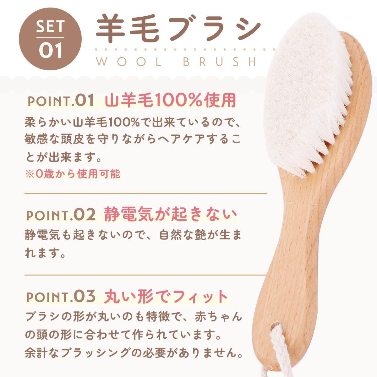 ベビーには本当にいいものを 0歳から使える ベビーブラシ3点セット 赤ちゃん ヘアブラシ ベビーヘアブラシ 赤ちゃん ブラシ 赤ちゃん用 ヘアブラシ 出生祝い 出産 贈り物 出産 祝い 羊毛