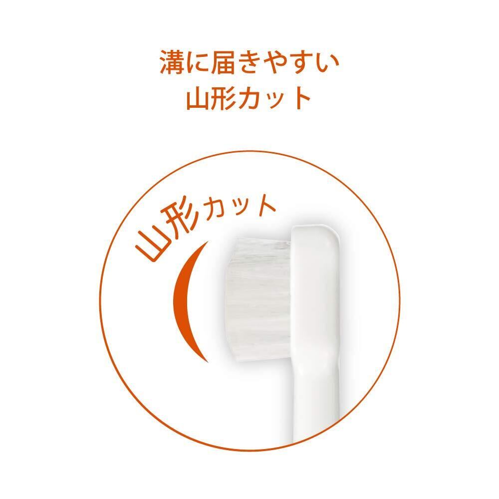 ●なが~く使える乳歯ブラシSTEP4。 ●奥歯がはえた、1才半頃からご使用になられます。 ●みがけた! を毎日の習慣に。 ●奥歯の溝に届きやすい山形カット! ●グリップはお子さまの手の発達を考えた形状・太さ・長さなので握りやすくなっています。 ●毛先が開きづらいしっかりした毛先なので、奥歯のすき間も磨きやすくなっています。 ●先端部を口にくわえても、お子さまがのどを突きにくい形状を目指しました。