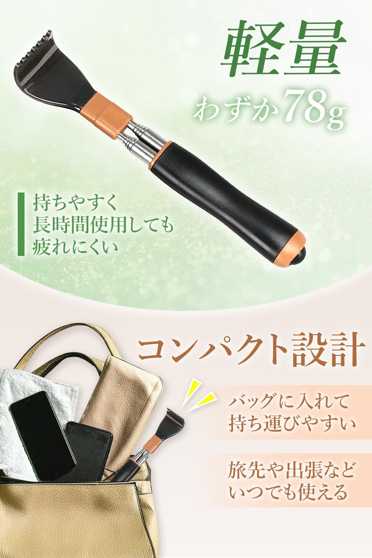【コンパクト収納&持ち運び便利】縮めればポケットやバッグに収まるので、外出先や旅行でも手軽に使えます。かゆい所に手が届く便利グッズとして活躍してくれます。
