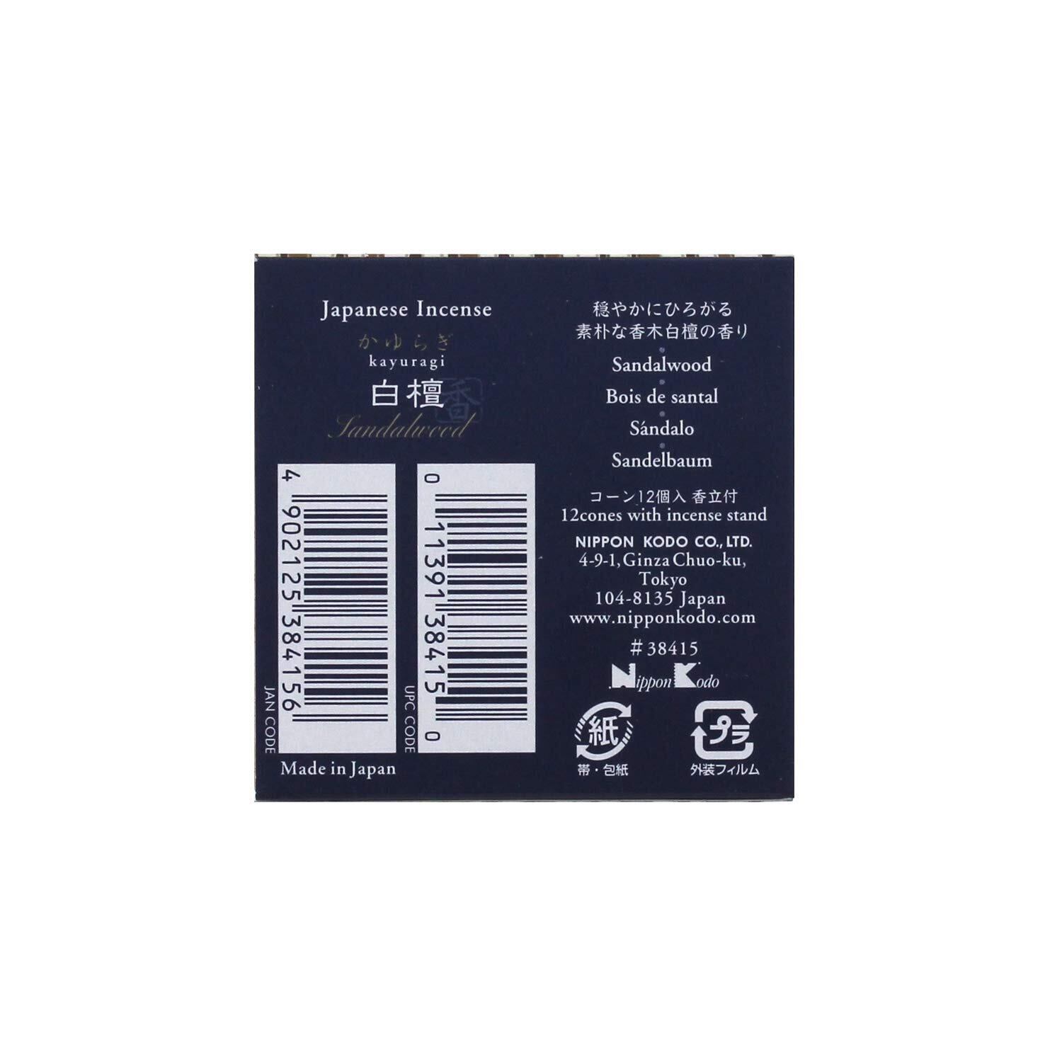 かゆらぎ 白檀 びゃくだん コーン 12個 お香 香立て付 日本香堂 インセンス 線香 日本製 桐箱 サンダルウッド 香木