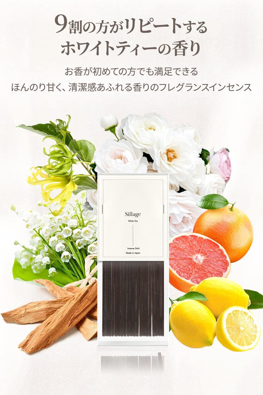 Sillage お香 線香 日本製 インセンススティック 20本 フレグランス アロマ オシャレ (White Tea)