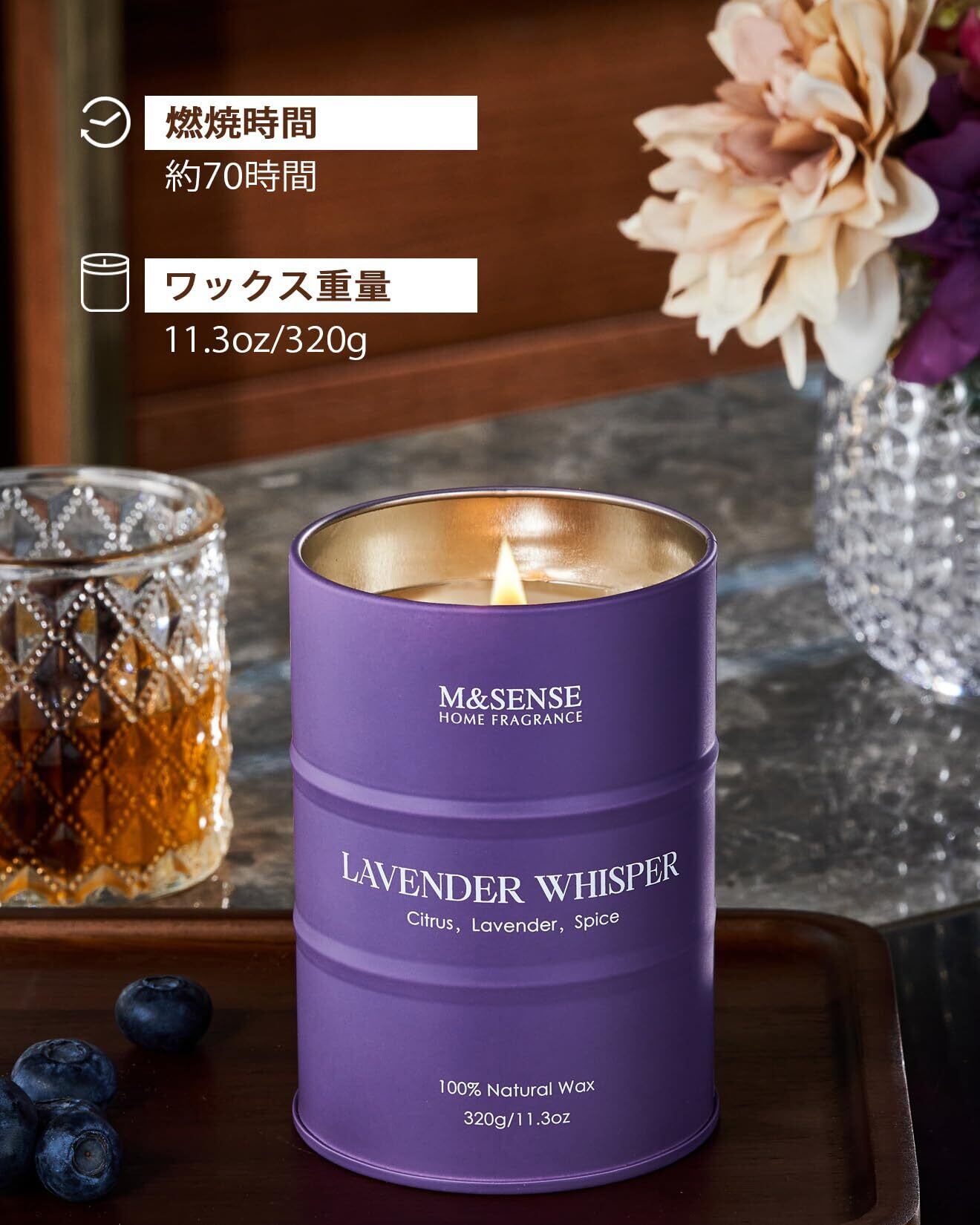 M&SENSE アロマキャンドル 人気 ラベンダーの香り 大型 320g 70時間 おしゃれ ソイキャンドル 癒しグッズ ホワイトデー バレンタイン 母の日 ギフト 女性向け プレゼント