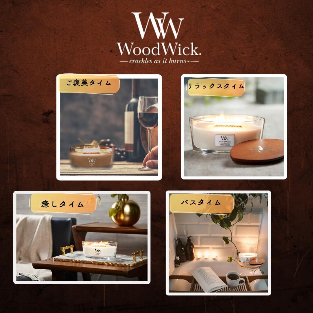 WoodWick アロマキャンドル 焚火 ウッドウィック ハースウィック キャンドル 焚き火の音がするキャンドル ギフト 女性 プレゼント 香り アロマ (ホワイトティ―&ジャスミン)