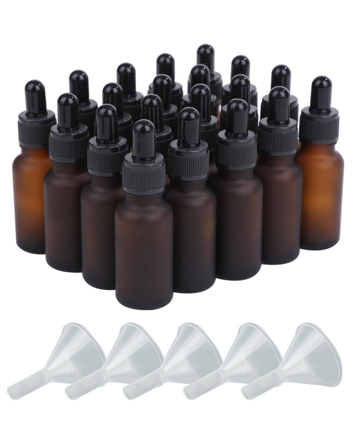 Chocople 遮光瓶 スポイト付き 精油 アロマオイル 詰め替え 保存用 ガラス製 艶消しブラウン 漏斗付き 20本セット(5ml)