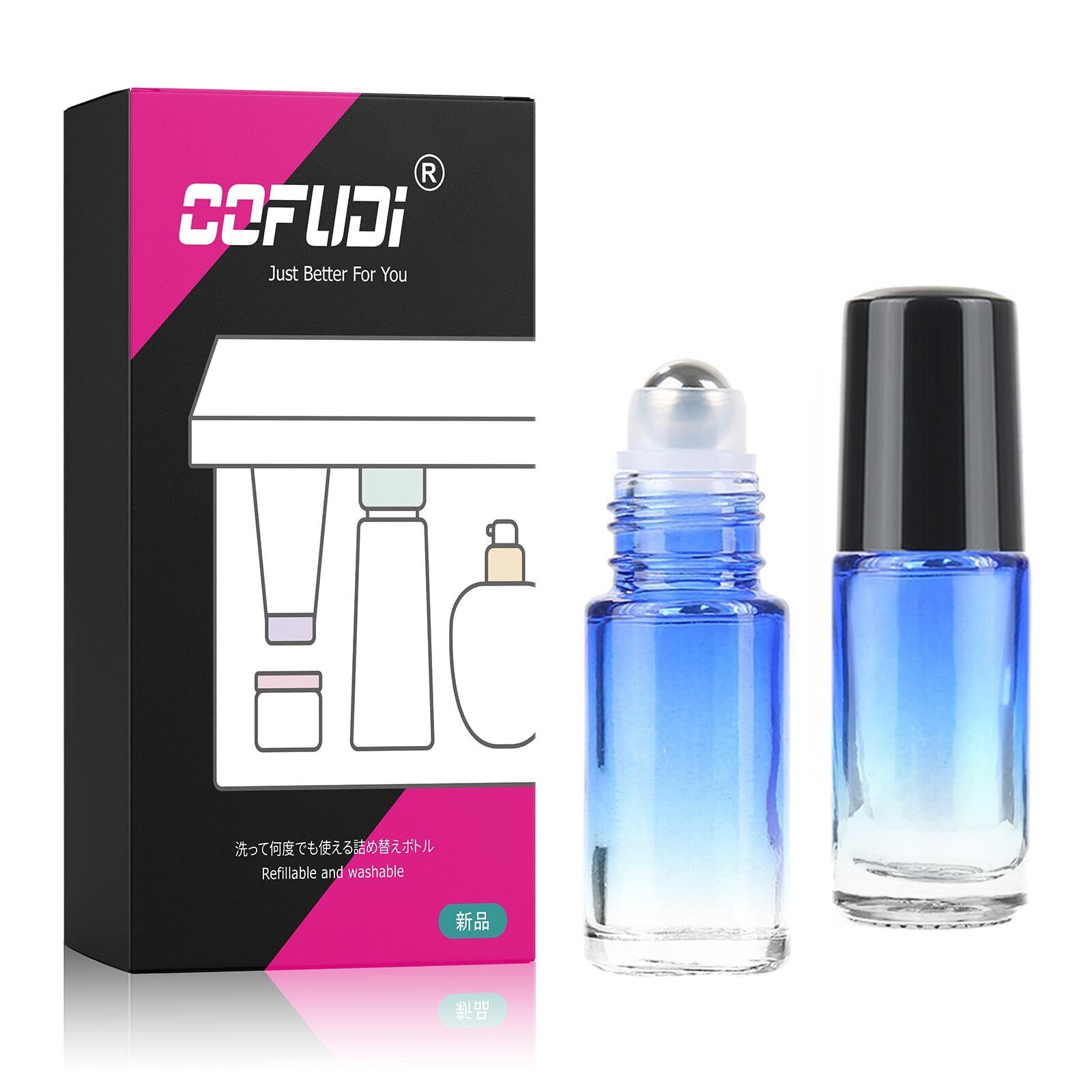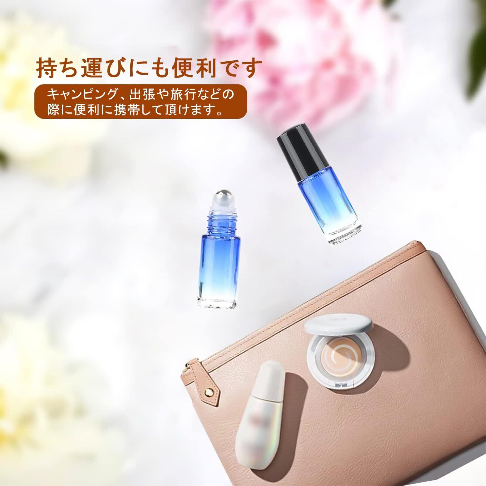ロールオンボトル 5ml 2本セット 遮光瓶 ガラス アロマ容器 化粧水 精油 香水入れ ローラーボールボトル 小分け容器 詰め替え 旅行用(ブルーグラデーション)