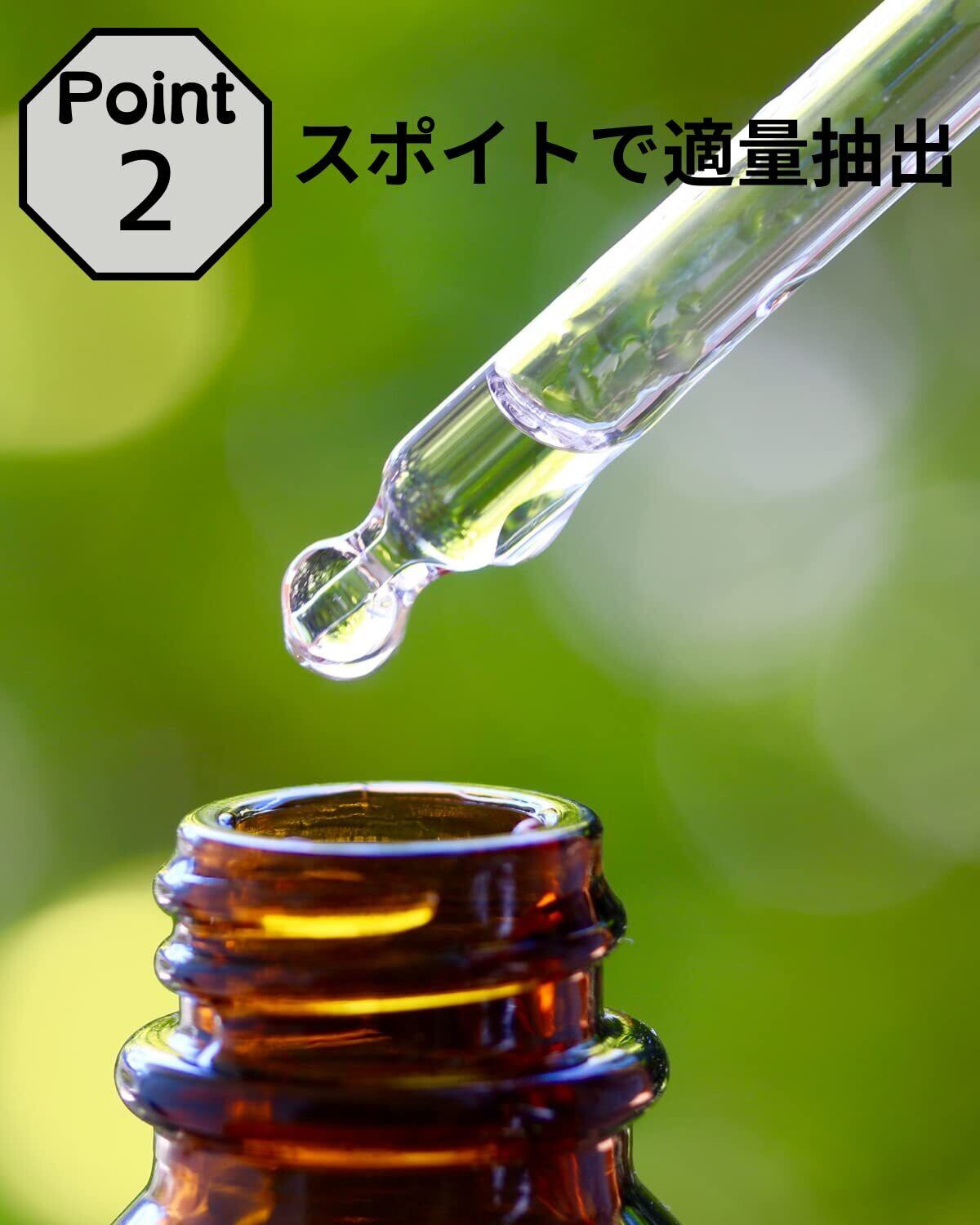 【ガラス製の遮光瓶で液体の痛み防止に】熱や紫外線から守るので中身の液体の痛みを防止します。 【スポイトで適量】シリコンゴムのつまみで適量を抽出できます。