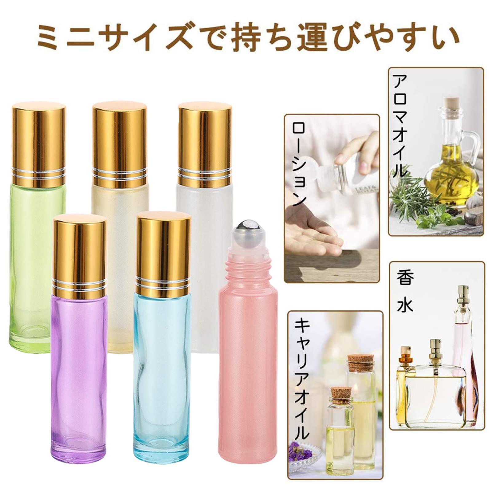 Yorkereynom ロールオンボトル 6本セット 10ml アロマ保存容器 ガラス容器 遮光 ミニボトル アトマイザー 香水 アロマ 見分け 携帯便利 精油 小分け用 アロマオイル 化粧水 手作り香水入れ 容器 遮光カラフル 精油小分け コスメ 詰替え 旅行用 携帯用 便利