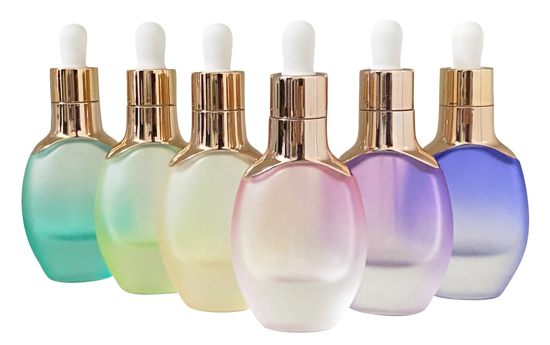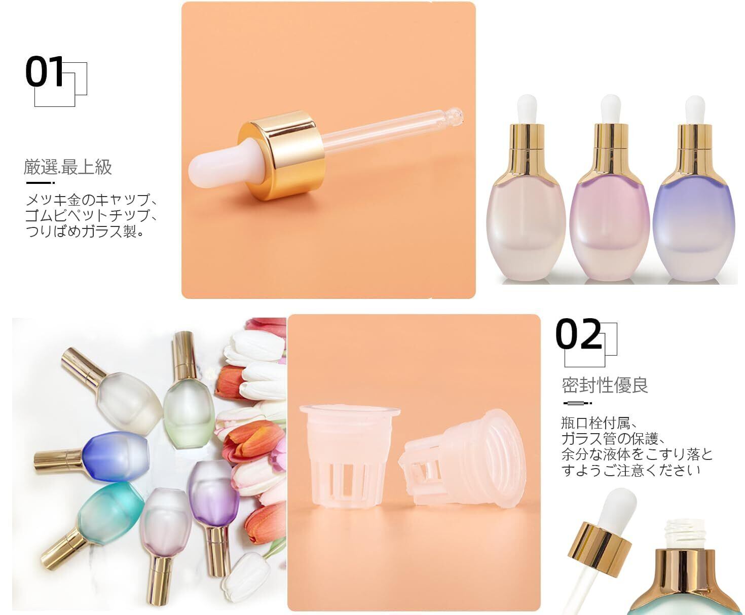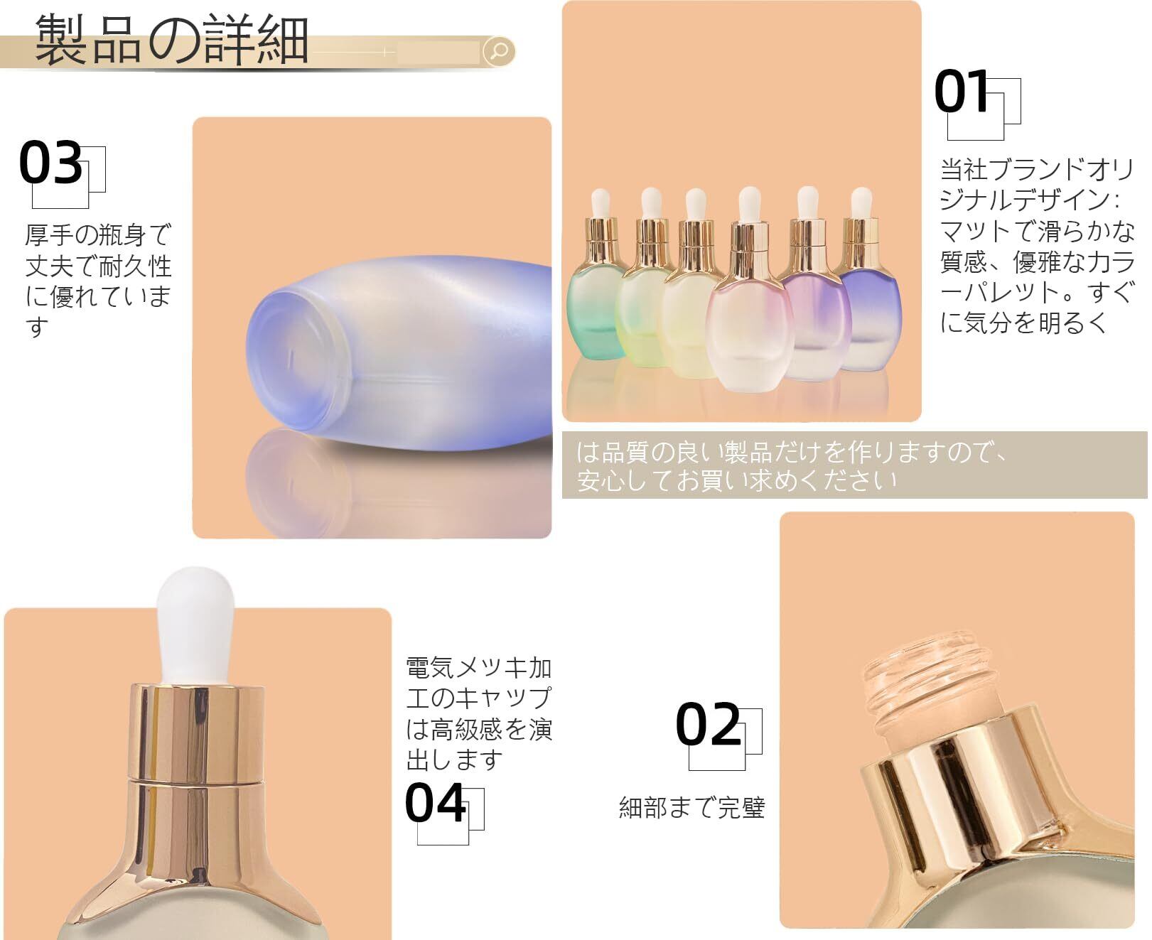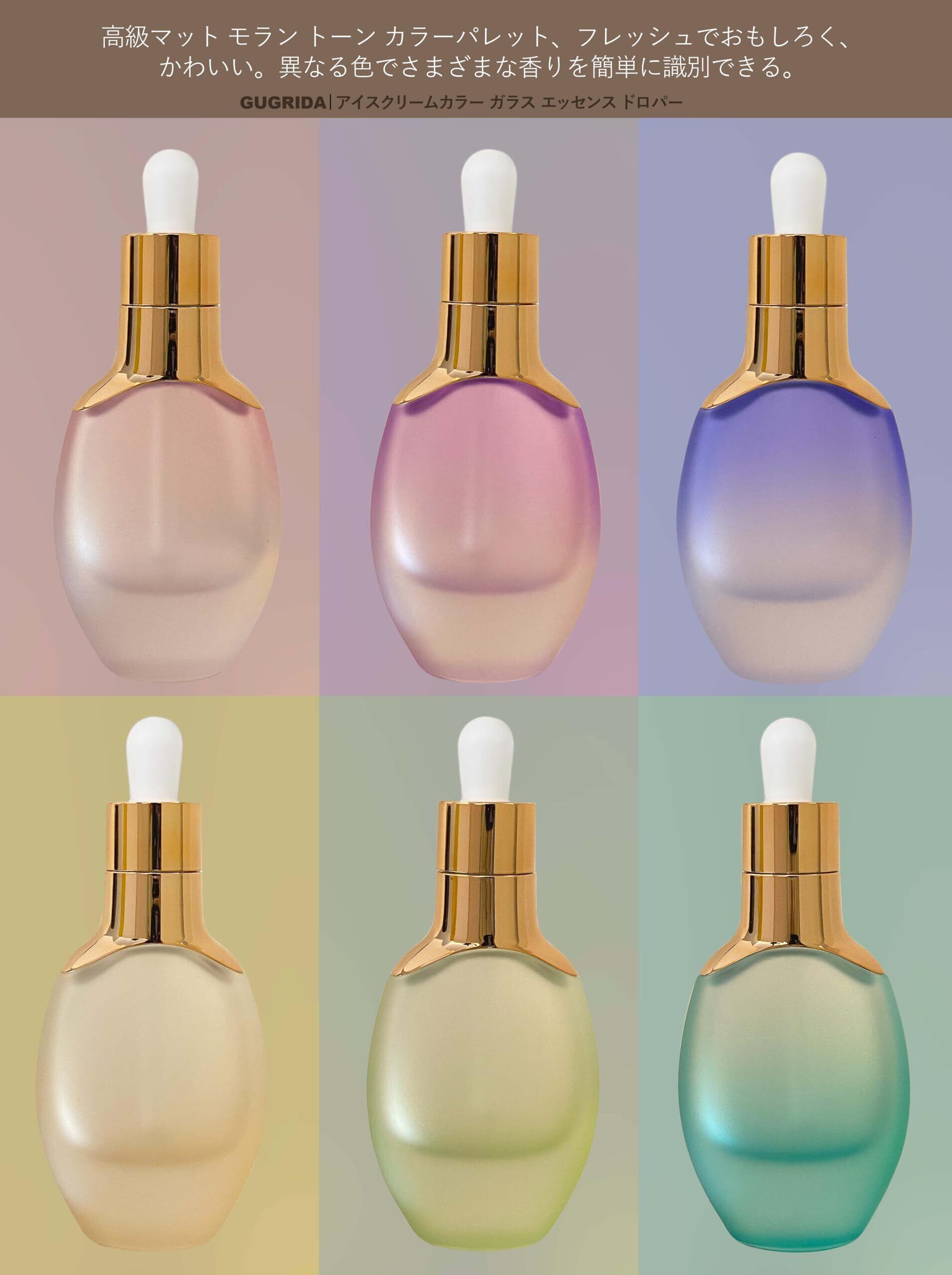 Gugrida かわいいカラフルエッセンシャルオイルボトル、スポイト式、ガラス製、化粧品・アロマオイル・ローション等に適用、30mlアロマ保存容器 (アラス仕上げ 6個入り)