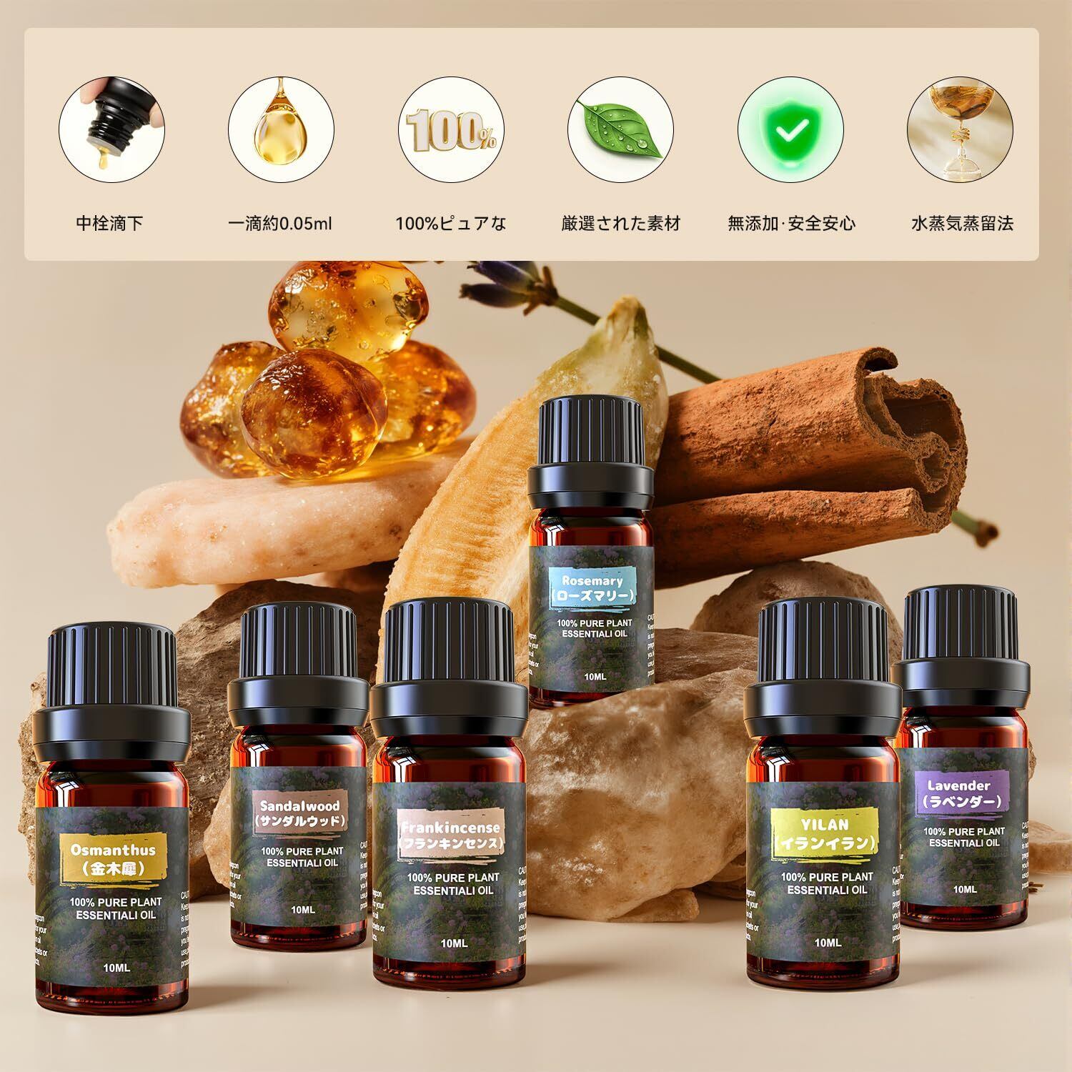 【6種セット】香り:ラベンダー/イランイラン/金木犀/フランキンセンス/ローズマリー/サンダルウッド(Lavender/Ylang-ylang/Osmanthus/Frankincense/Rosemary/Sandalwood)10ml×6本セット。