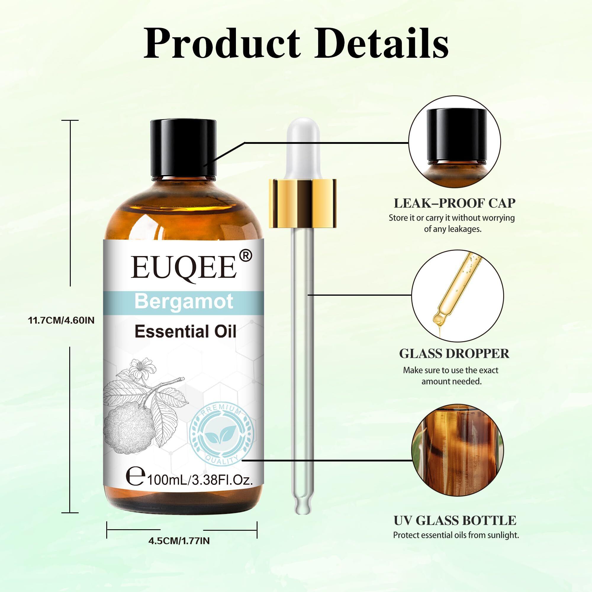 EUQEE アロマオイル ベルガモット エッセンシャルオイル 天然100% ベルガモット精油 100ml 加湿器用 アロマディフューザー用