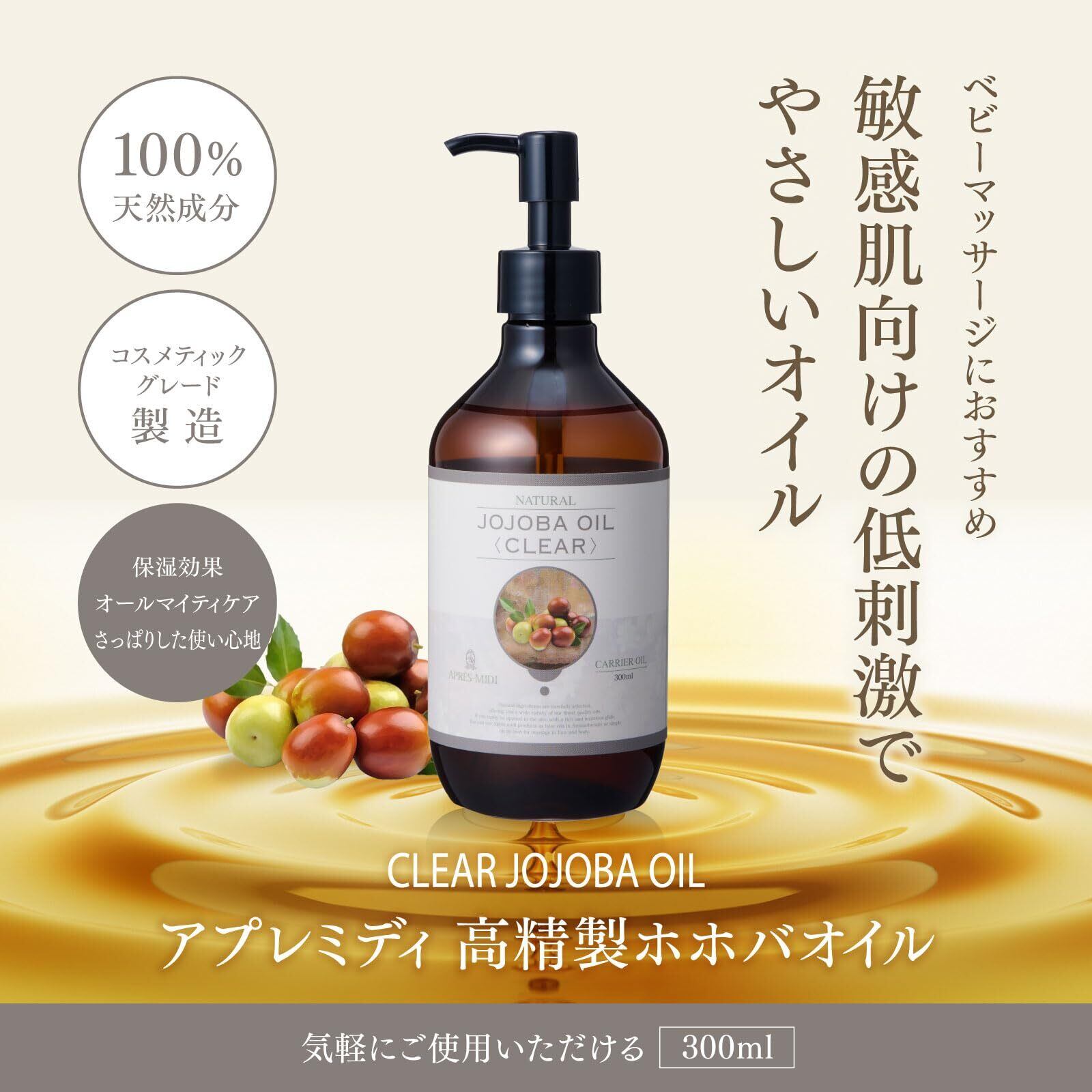 高精製ホホバオイル クリア 300mL 天然100% マッサージ フェイス ボディ ヘア ボタニカル 無香料 保湿 <アプレ・ミディオイル RJO>