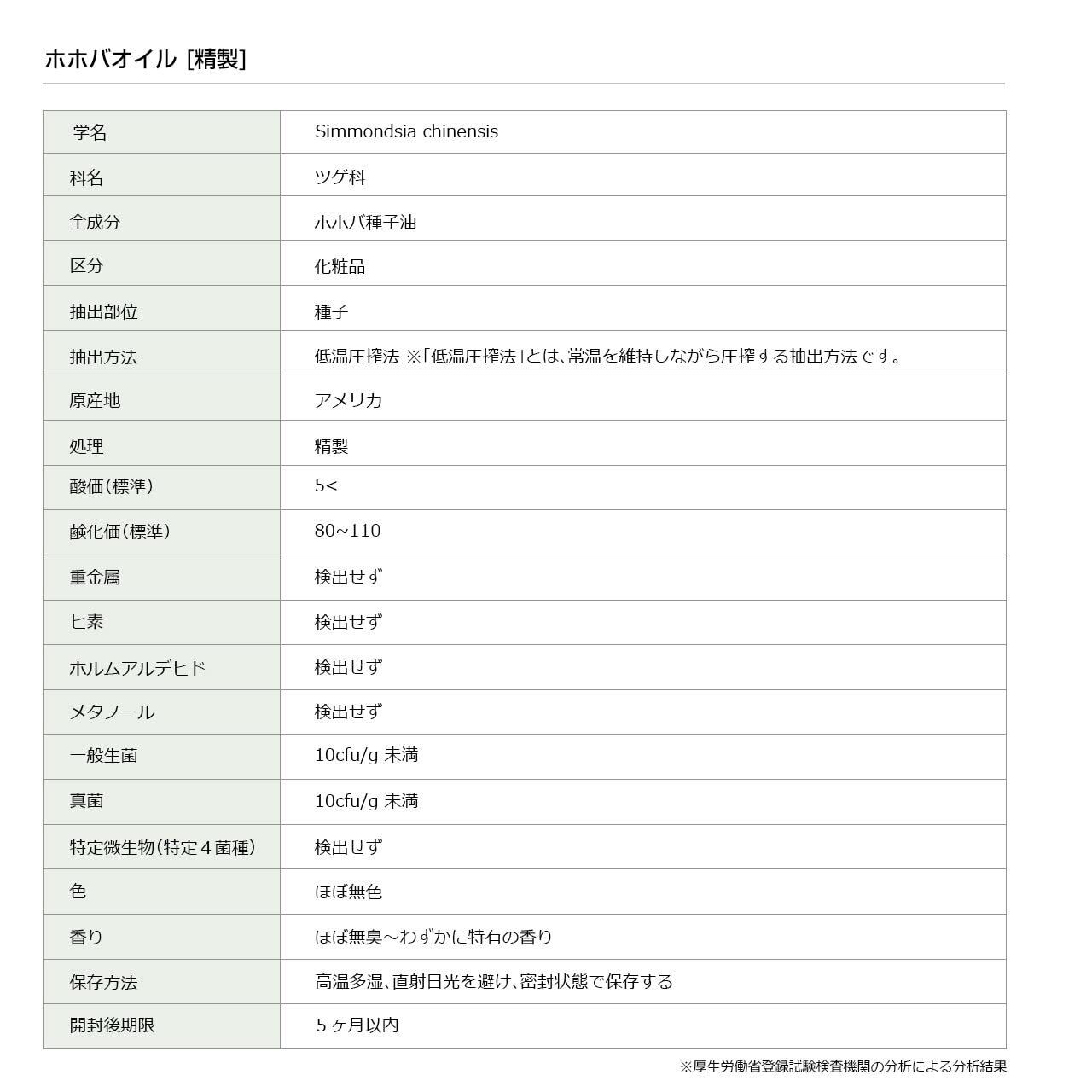 全成分 ホホバ種子油 / 抽出部位 種子